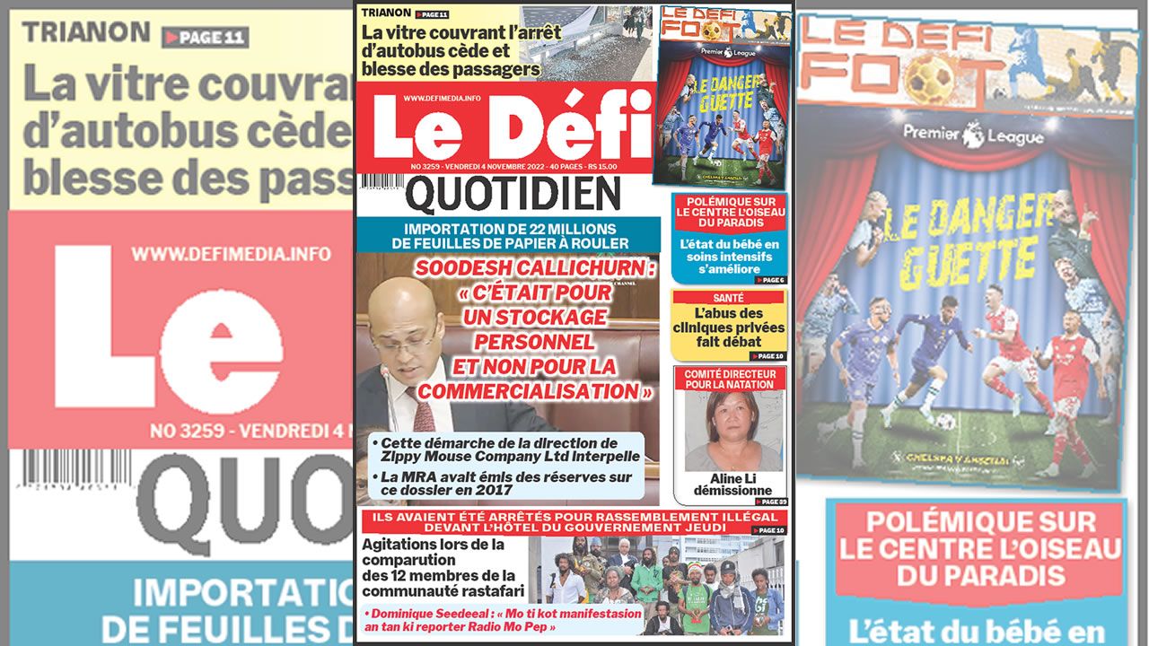 ? Voici la Une du Défi Quotidien. Le journal est en vente à Rs 15 l'exemplaire aux endroits habituels (supermarchés, boutiques, tabagies, superettes). Bonne lecture !