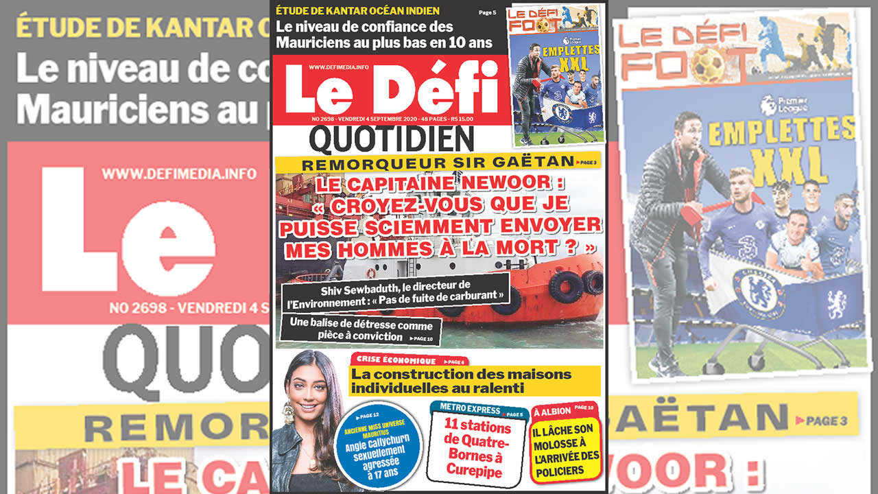 Voici la Une du Defi Quotidien de ce Vendredi 04 Septembre 2020