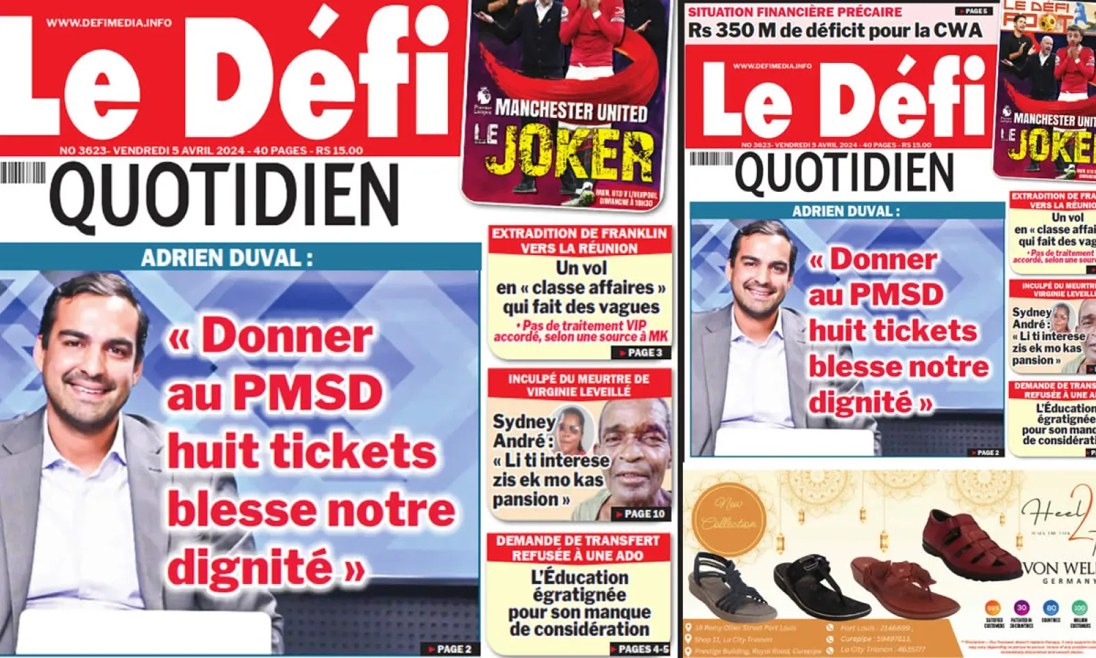 ? Voici la Une du Défi Quotidien. Le journal est en vente à Rs 15 l'exemplaire aux endroits habituels (supermarchés, boutiques, tabagies, superettes). Bonne lecture !
