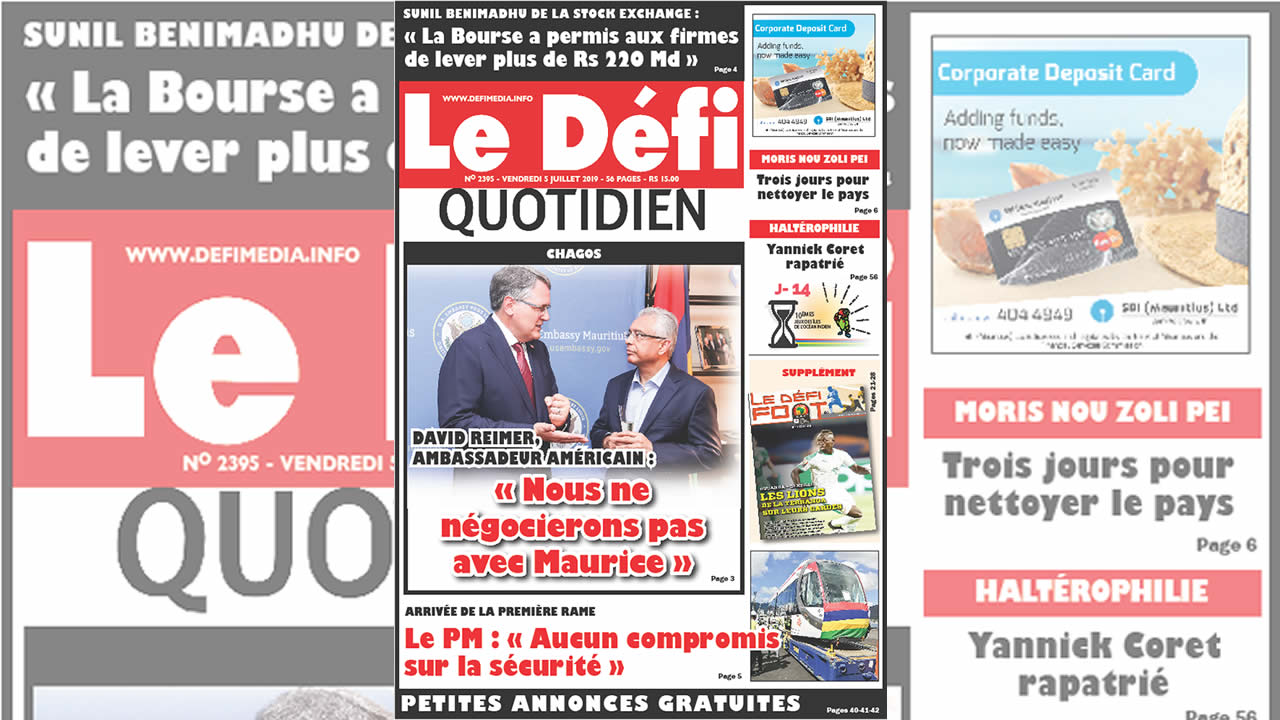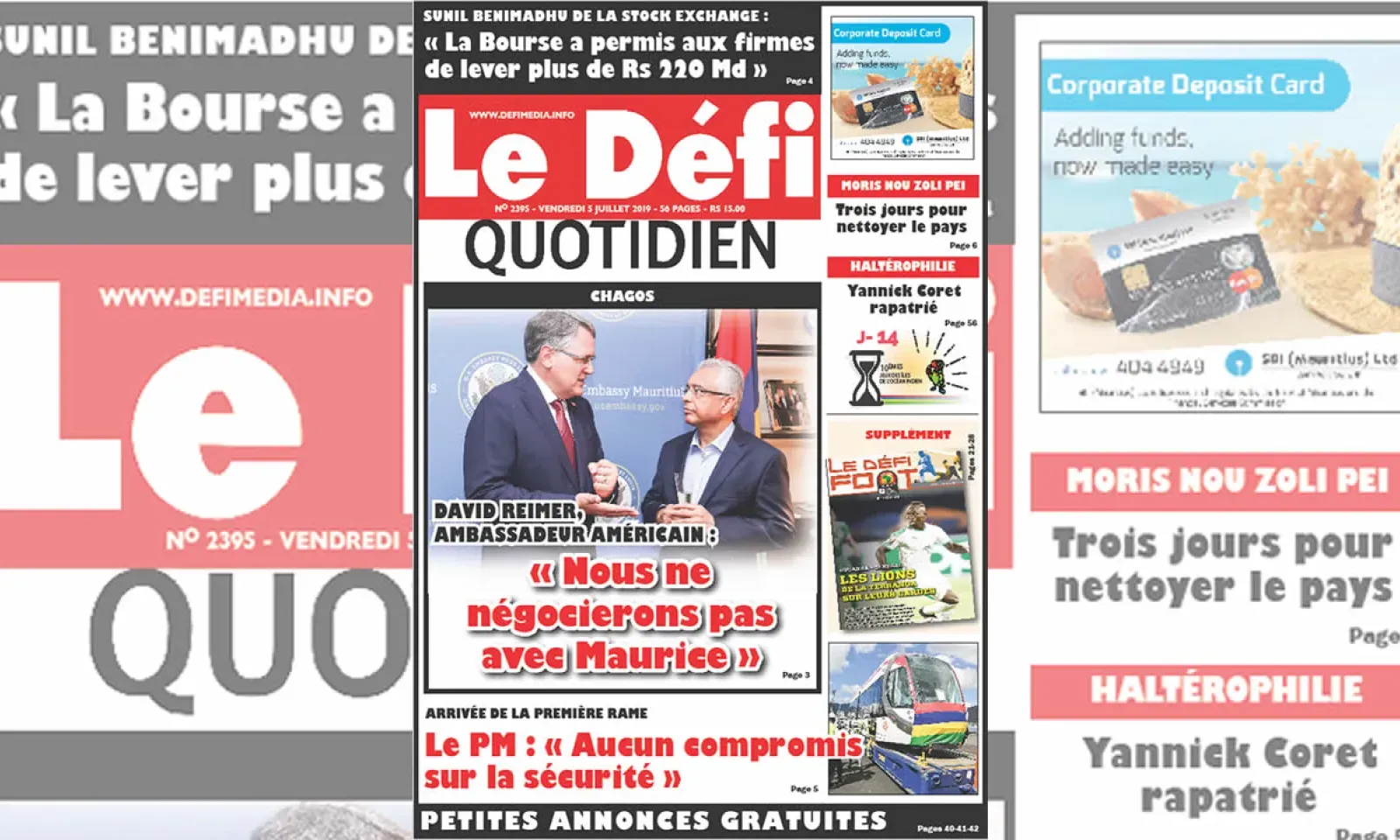 La position des États-Unis reste inchangée sur le dossier Chagos. L’ambassadeur américain à Maurice, David Reimer, a expliqué que son pays soutiendra toujours les Britanniques. C’était dans la soirée du jeudi 4 juillet, à l’occasion du 243e anniversaire de l’indépendance des États-Unis.