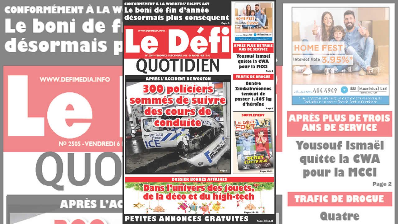 Voici la Une du Defi Quotidien de ce vendredi 06 décembre 2019