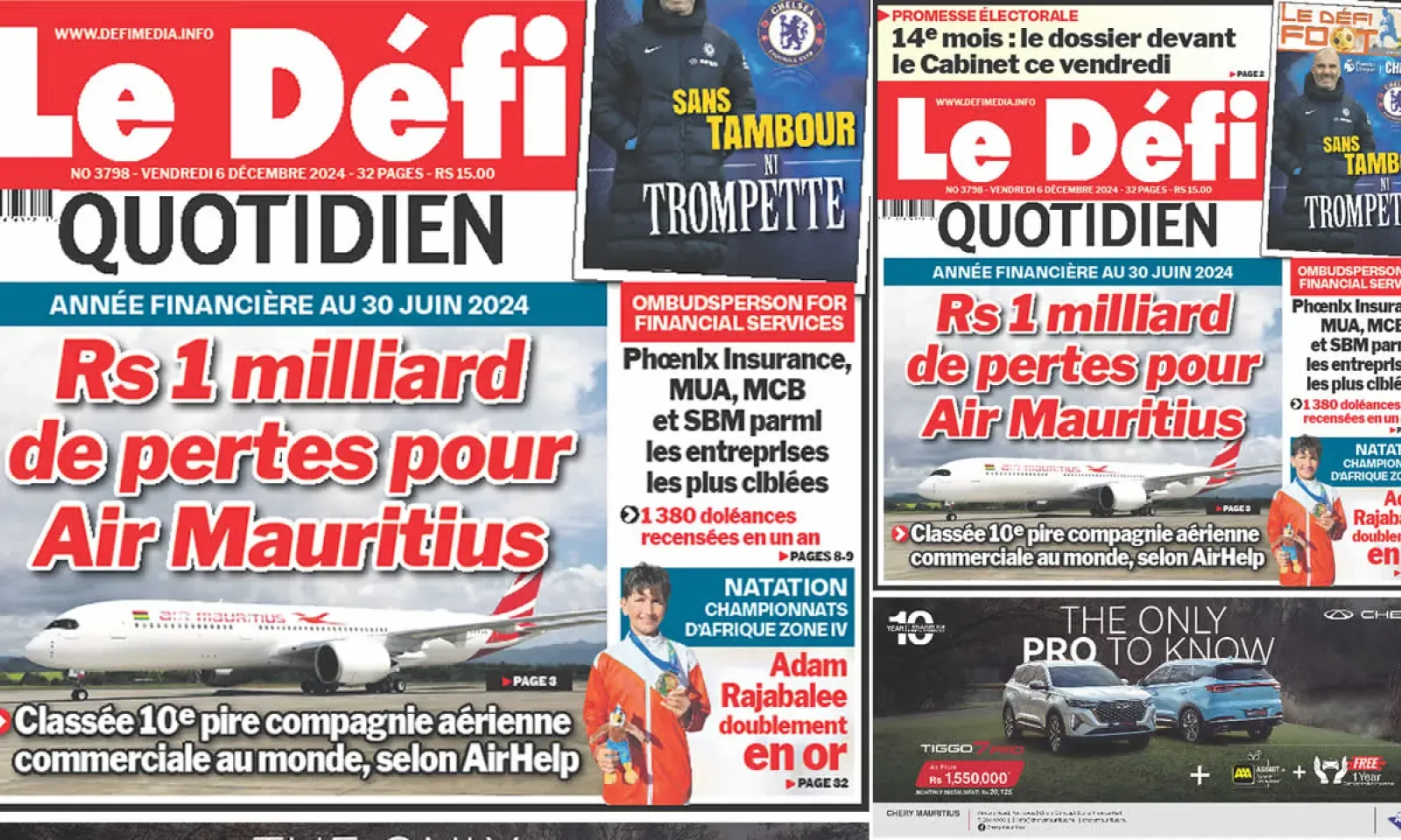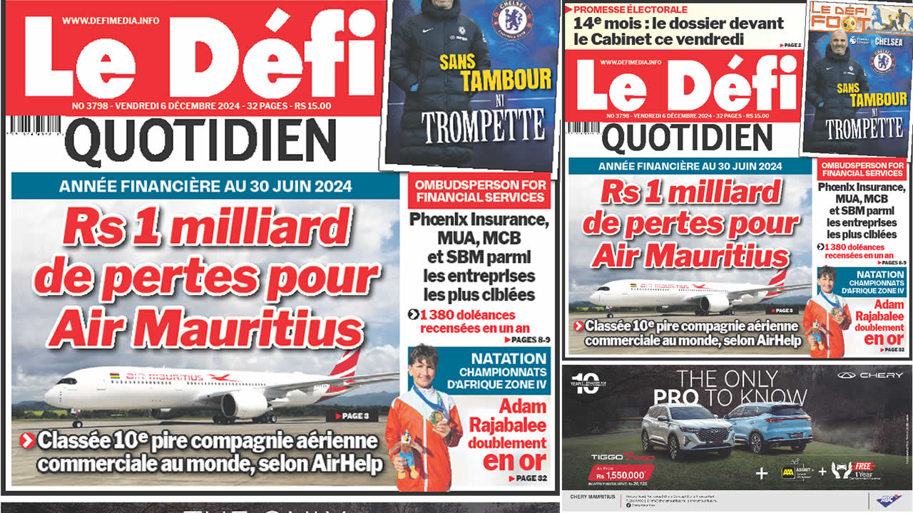 ? Voici la Une du Défi Quotidien. Le journal est en vente à Rs 15 l'exemplaire aux endroits habituels (supermarchés, boutiques, tabagies, superettes). Bonne lecture !