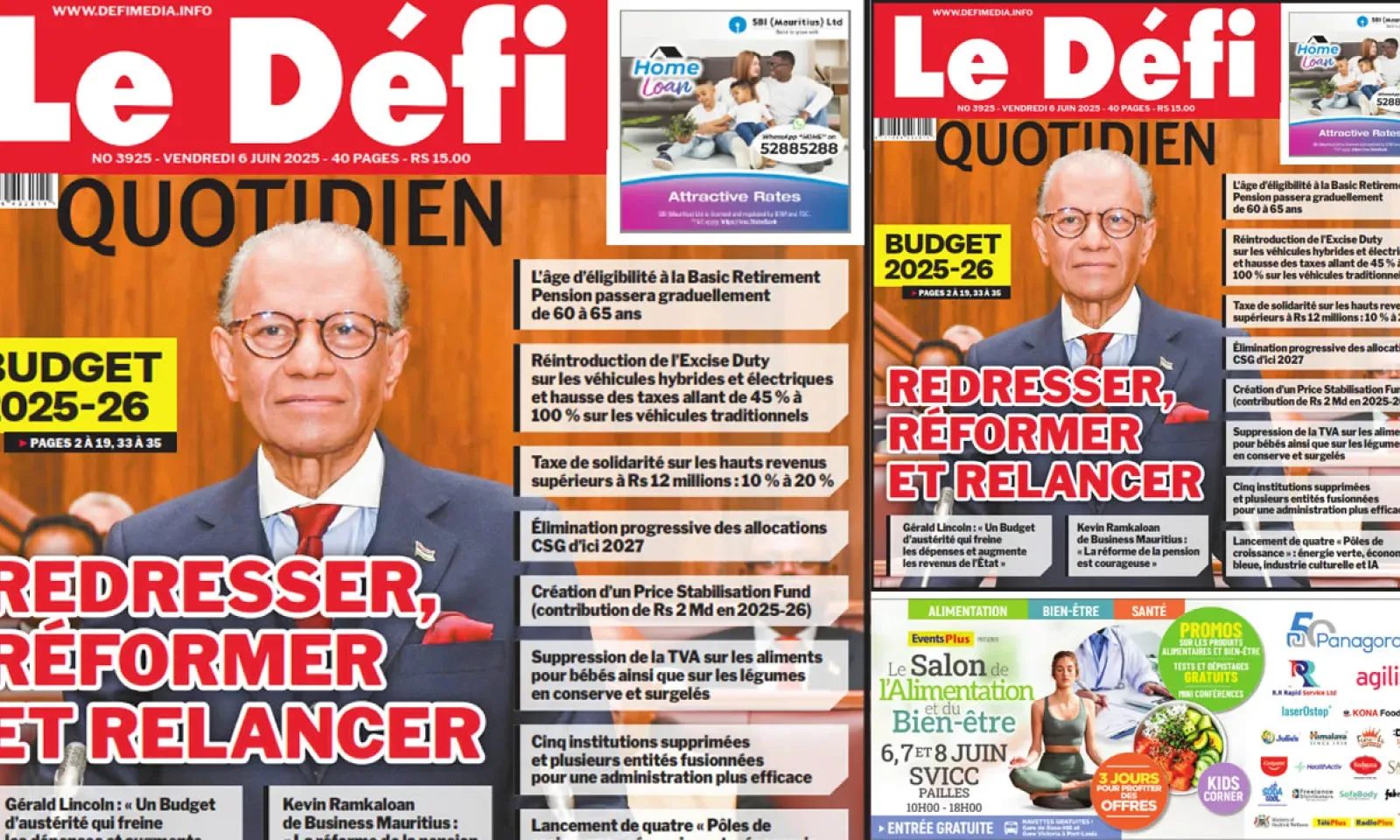 ? Voici la Une du Défi Quotidien. Le journal est en vente à Rs 15 l'exemplaire aux endroits habituels (supermarchés, boutiques, tabagies, superettes). Bonne lecture !
