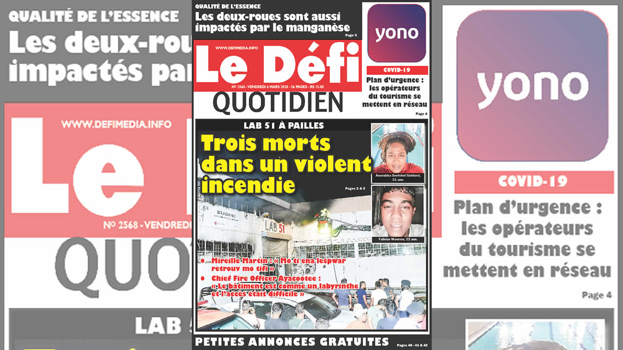 Un incendie d’une rare violence s’est déclaré à l’usine Lab 51, à Pailles, le jeudi 5 mars 2020. Prisonniers des flammes, Anouchka SeetohulGokhool, Serge Rioux, et Fabrice Maurice, trois employés de cette entreprise, n’ont pu être secourus. Leurs parents, amis et collègues sont sous le choc.