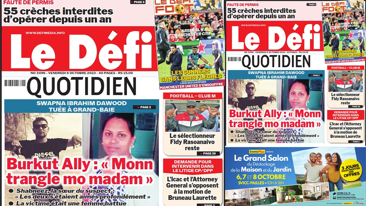 ? Voici la Une du Défi Quotidien. Le journal est en vente à Rs 15 l'exemplaire aux endroits habituels (supermarchés, boutiques, tabagies, superettes). Bonne lecture !