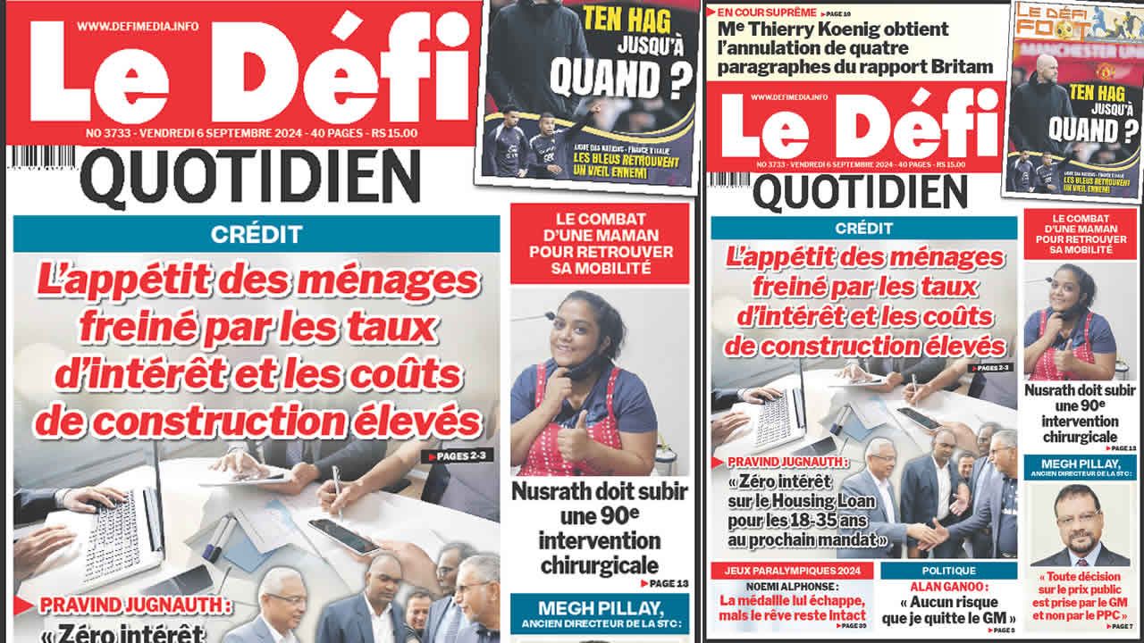 ? Voici la Une du Défi Quotidien. Le journal est en vente à Rs 15 l'exemplaire aux endroits habituels (supermarchés, boutiques, tabagies, superettes). Bonne lecture !