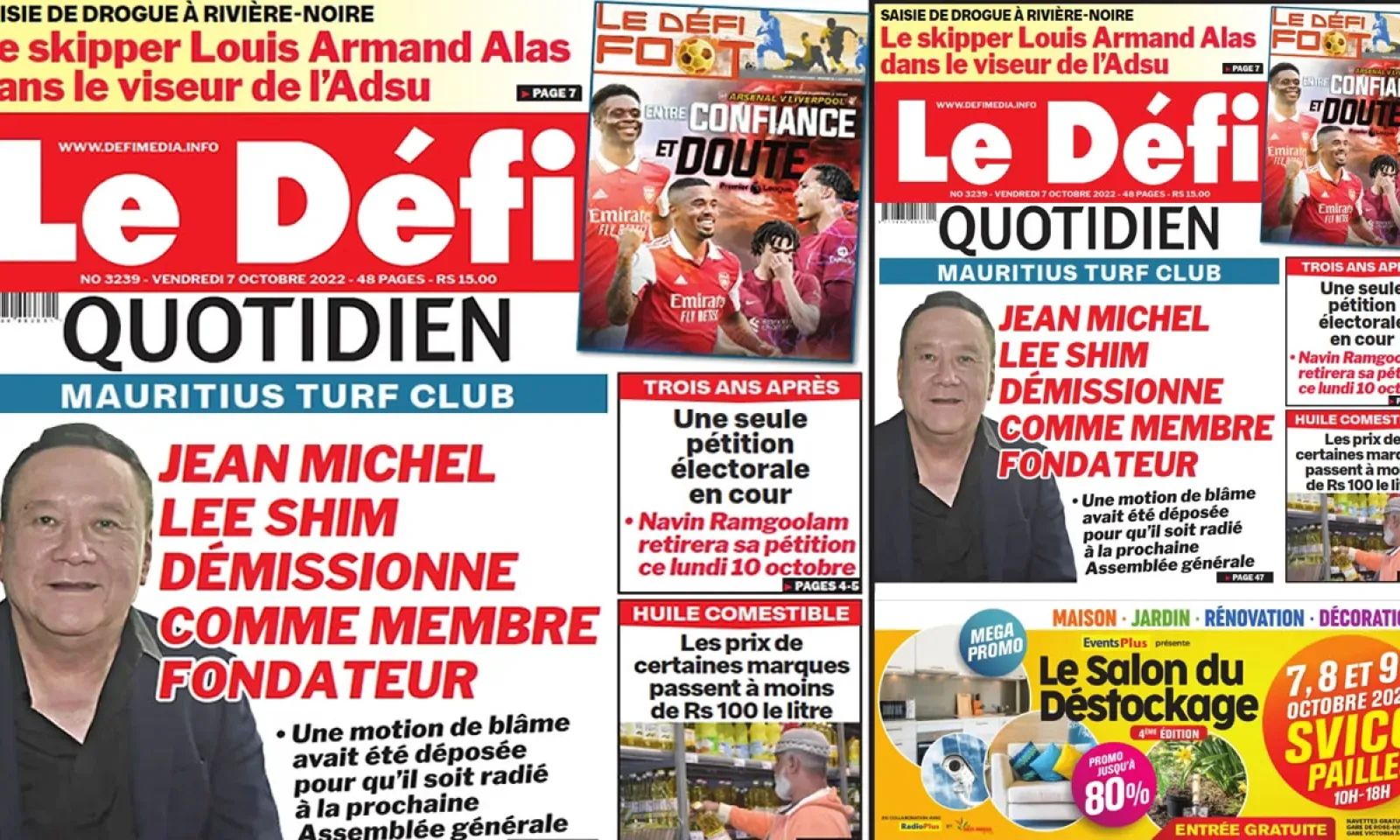 ? Voici la Une du Défi Quotidien. Le journal est en vente à Rs 15 l'exemplaire aux endroits habituels (supermarchés, boutiques, tabagies, superettes). Bonne lecture !