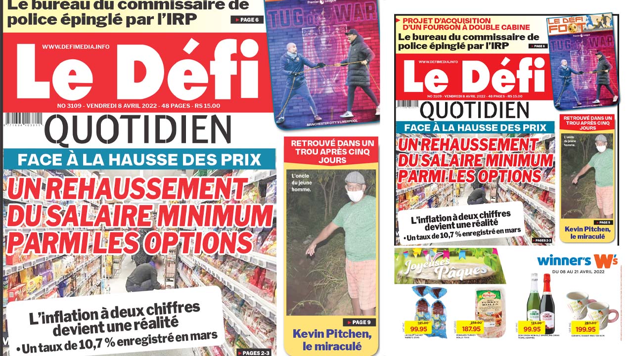 ? Voici la Une du Défi Quotidien. Le journal est en vente à Rs 15 l'exemplaire aux endroits habituels (supermarchés, boutiques, tabagies, superettes). Bonne lecture !