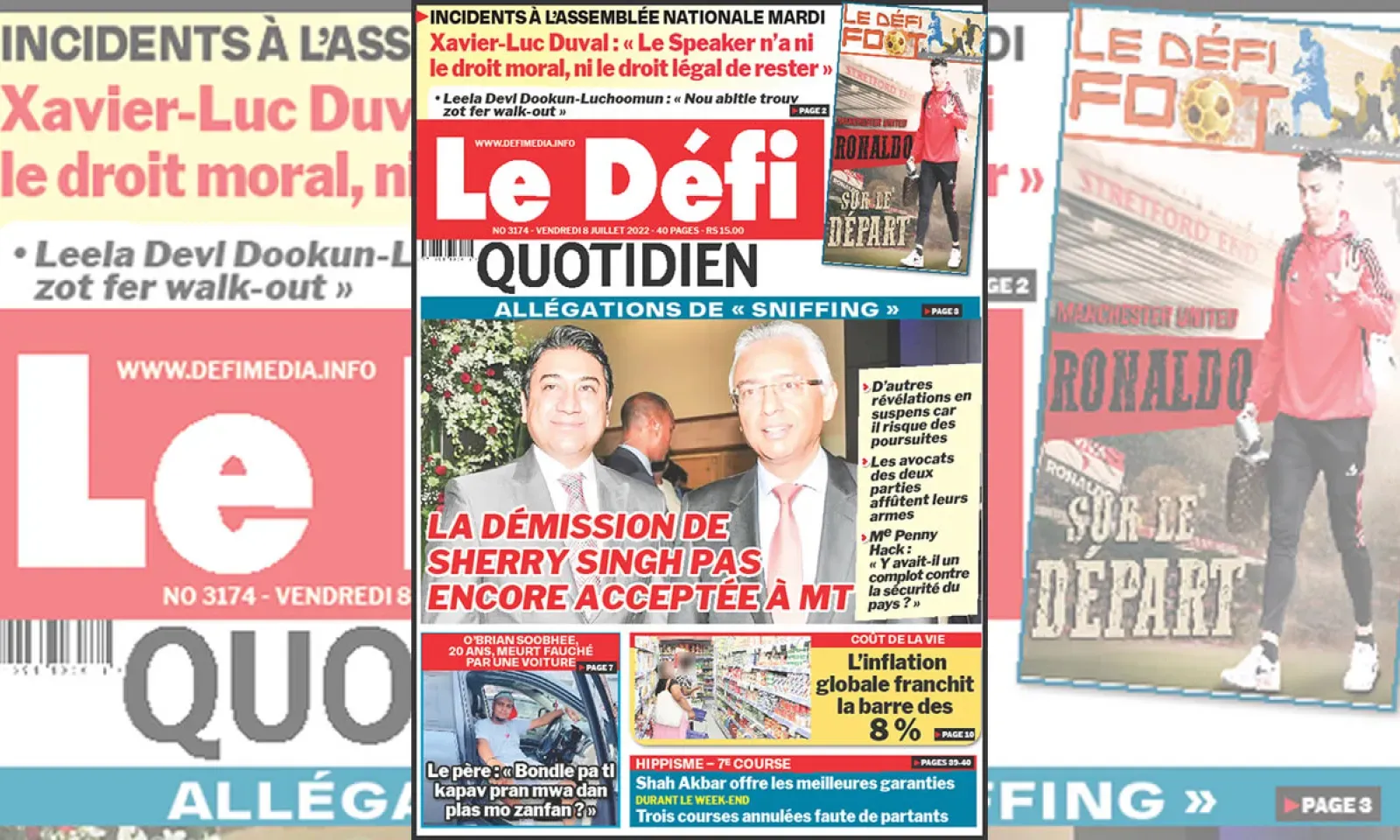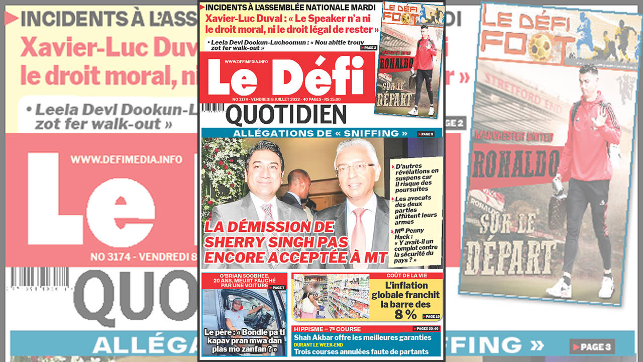 ? Voici la Une du Défi Quotidien. Le journal est en vente à Rs 15 l'exemplaire aux endroits habituels (supermarchés, boutiques, tabagies, superettes). Bonne lecture !