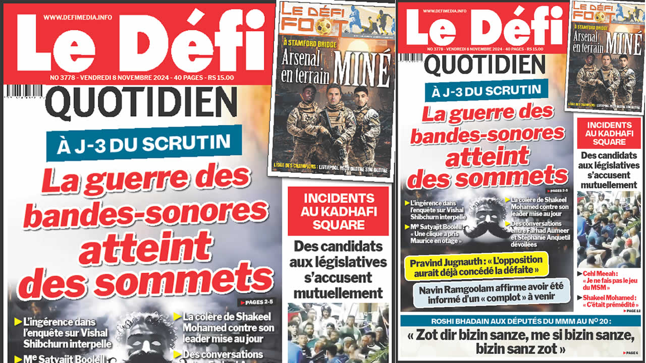 ? Voici la Une du Défi Quotidien. Le journal est en vente à Rs 15 l'exemplaire aux endroits habituels (supermarchés, boutiques, tabagies, superettes). Bonne lecture !