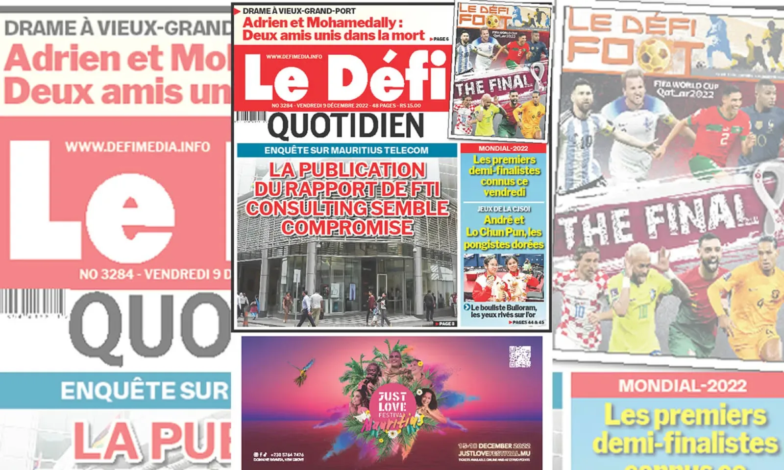 Voici la une du Défi Quotidien de ce vendredi 09 Décembre 2022