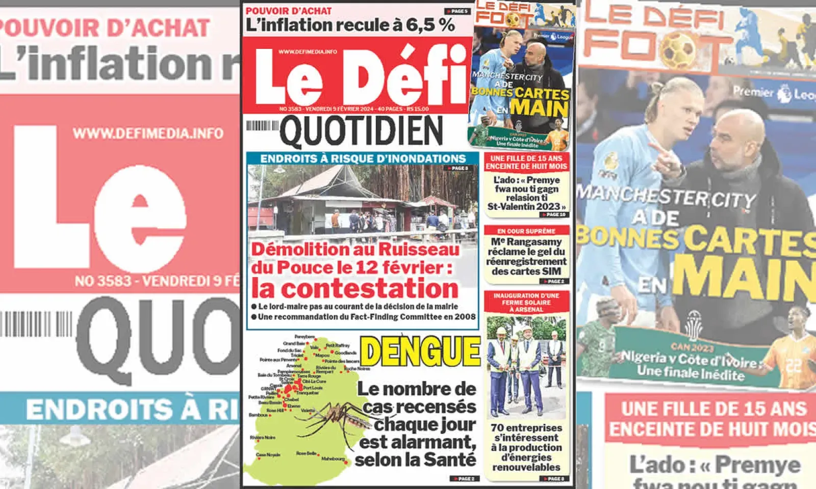 ? Voici la Une du Défi Quotidien. Le journal est en vente à Rs 15 l'exemplaire aux endroits habituels (supermarchés, boutiques, tabagies, superettes). Bonne lecture !