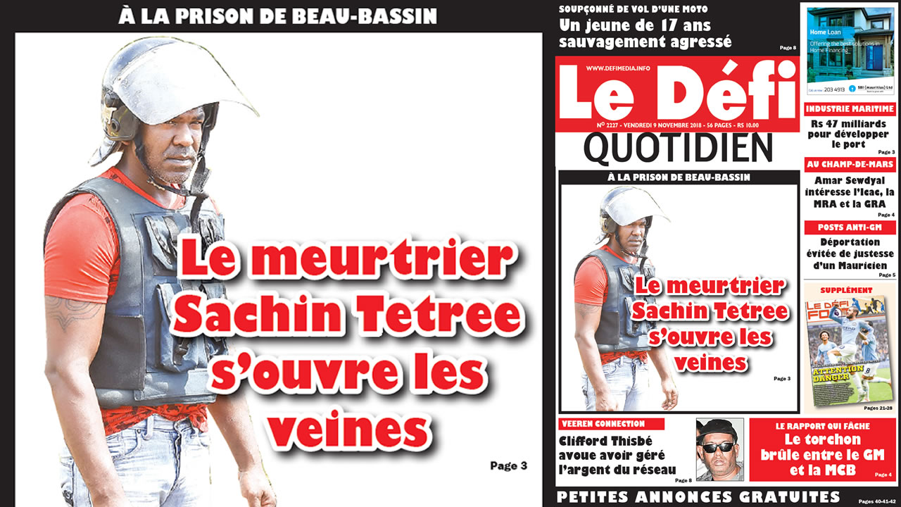 A la prison de Beau_bassin : le meurtrier Sachin Tetree s’ouvre les veines