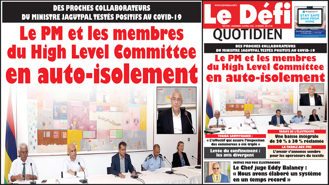 Le Premier ministre, Pravind Jugnauth, est en isolement chez lui depuis jeudi soir. Cela fait suite à des cas positifs décelés dans le cercle proche du ministre de la Santé, le Dr Kailesh Jagutpal. « Par mesure de précaution, tous les membres du High Level Committee sur le Covid-19, présidé par le Premier ministre, et ceux du National Communication Committee se sont auto-isolés depuis le début de la soirée. Cela pour avoir été en contact avec le ministre Jagutpal lors des réunions », indique un communiqué émis par le Bureau du Premier ministre peu avant minuit.