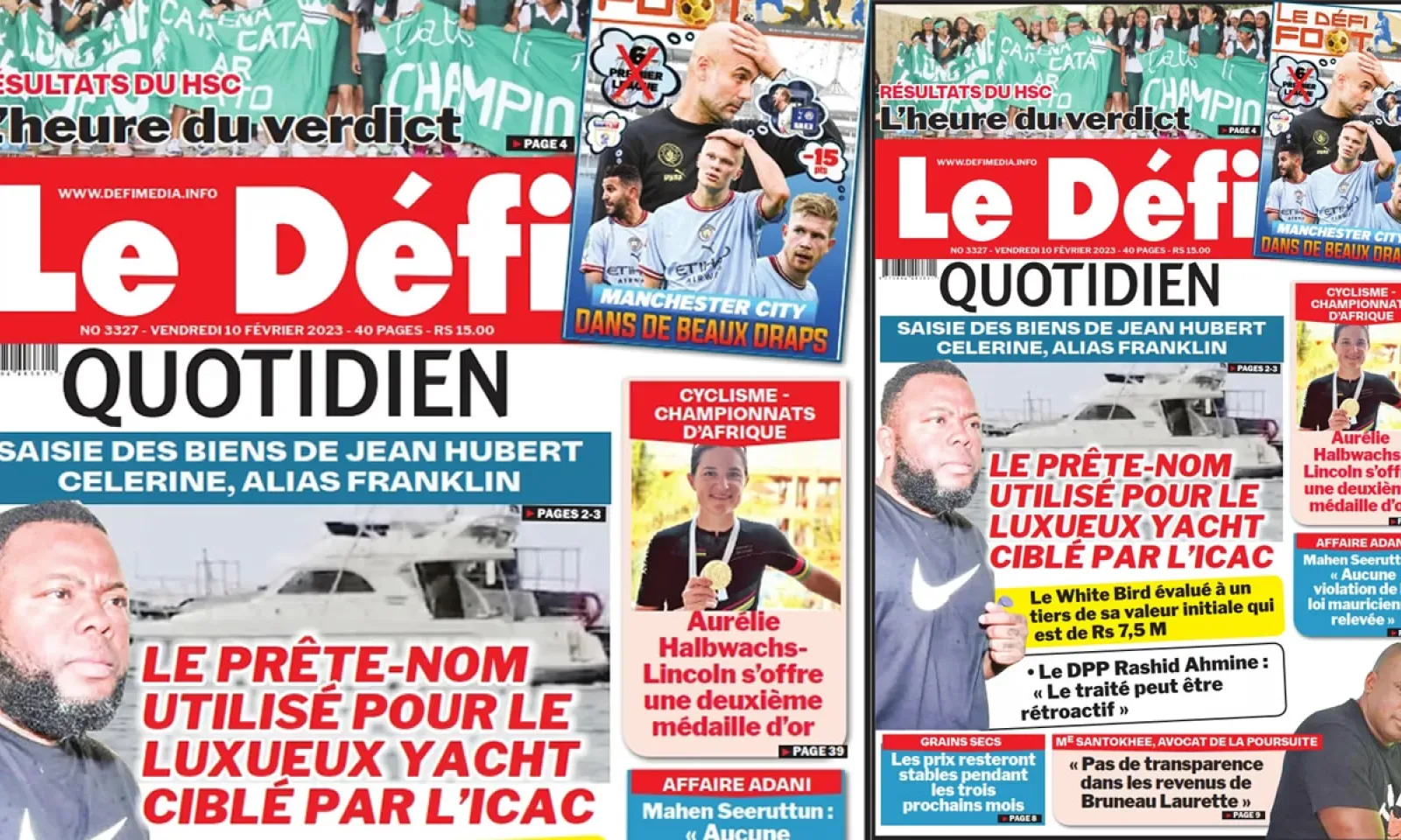 ? Voici la Une du Défi Quotidien. Le journal est en vente à Rs 15 l'exemplaire aux endroits habituels (supermarchés, boutiques, tabagies, superettes). Bonne lecture !
