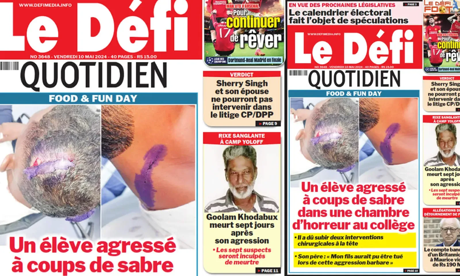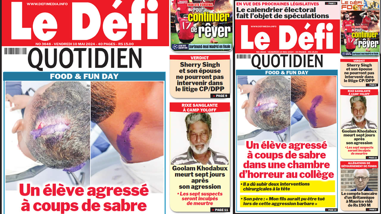 ? Voici la Une du Défi Quotidien. Le journal est en vente à Rs 15 l'exemplaire aux endroits habituels (supermarchés, boutiques, tabagies, superettes). Bonne lecture !