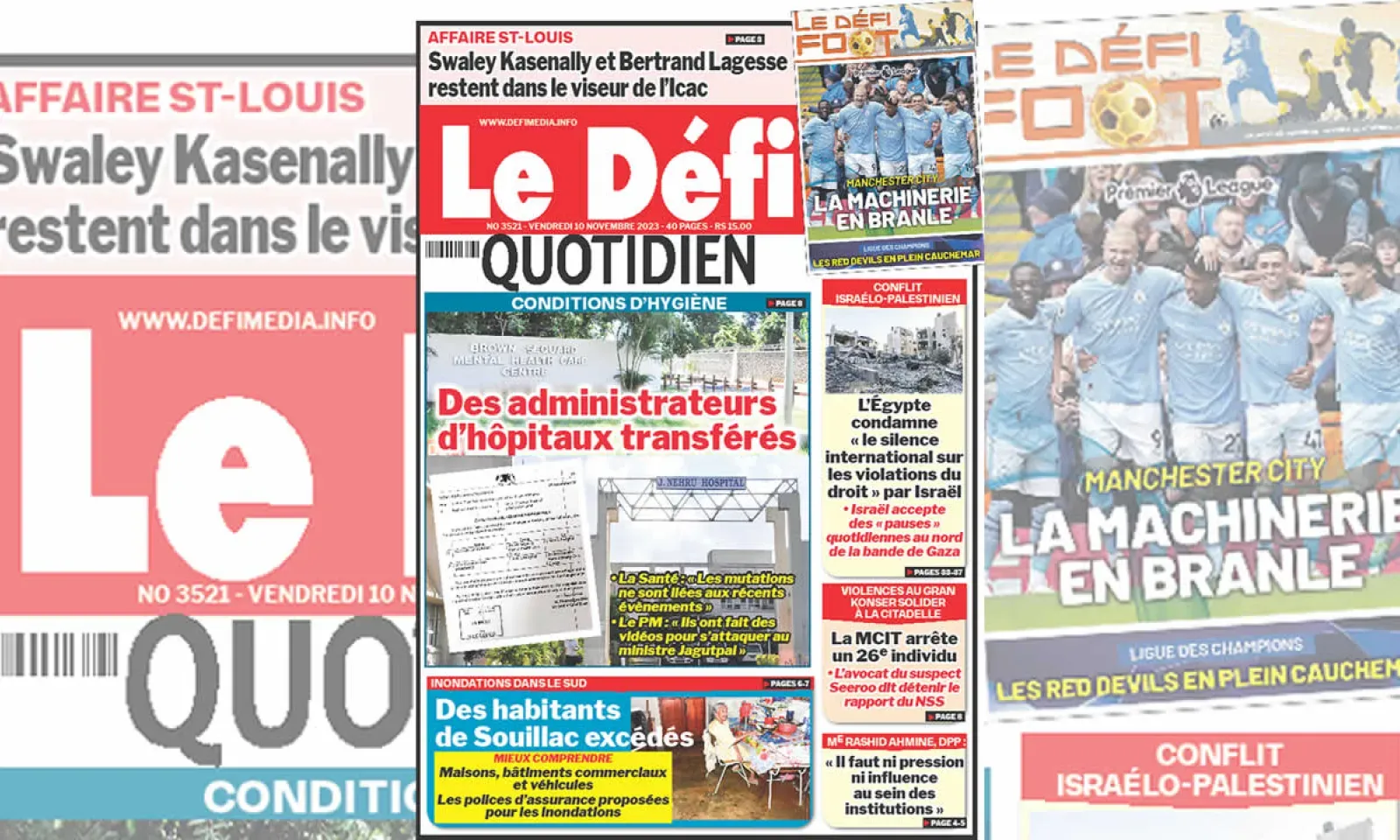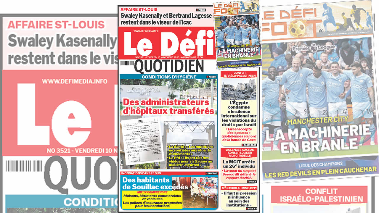? Voici la Une du Défi Quotidien. Le journal est en vente à Rs 15 l'exemplaire aux endroits habituels (supermarchés, boutiques, tabagies, superettes). Bonne lecture !