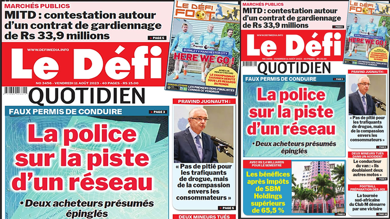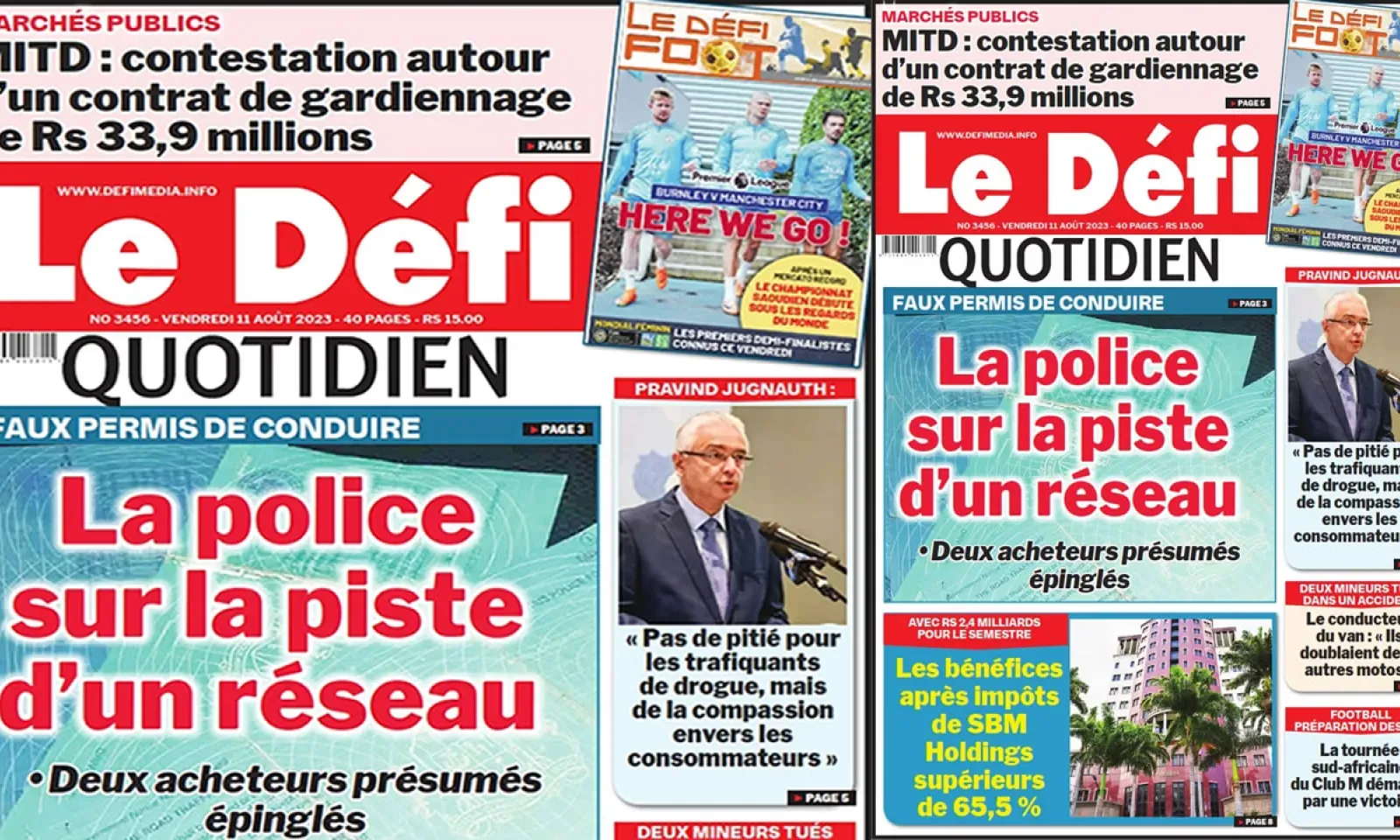 ? Voici la Une du Défi Quotidien. Le journal est en vente à Rs 15 l'exemplaire aux endroits habituels (supermarchés, boutiques, tabagies, superettes). Bonne lecture !
