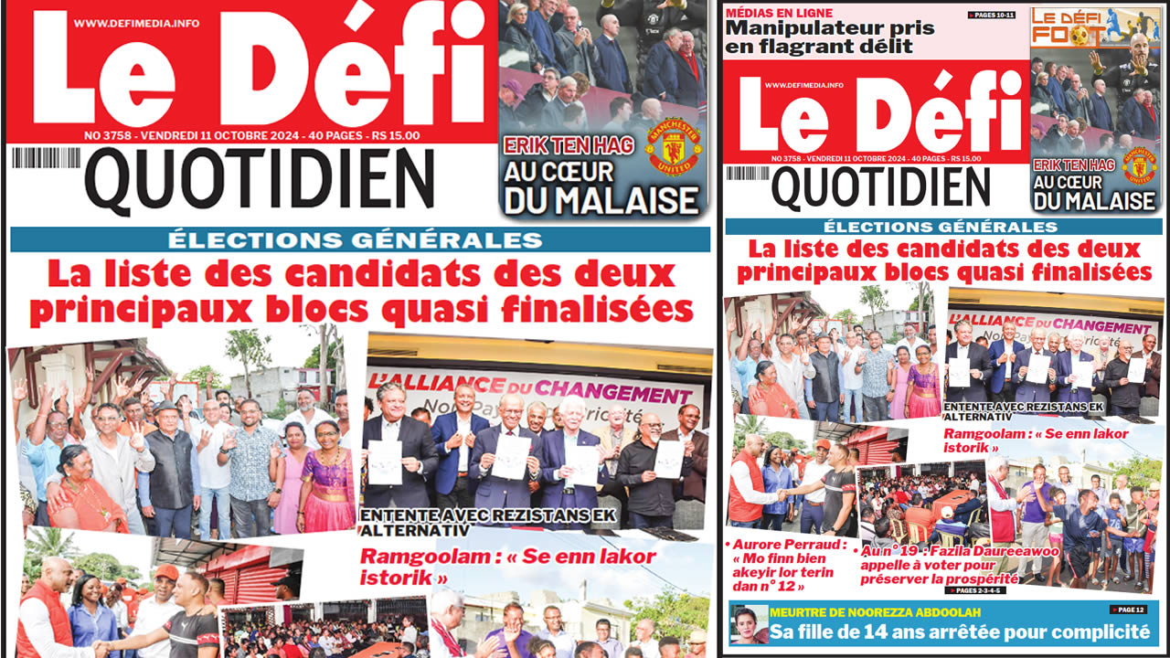 ? Voici la Une du Défi Quotidien. Le journal est en vente à Rs 15 l'exemplaire aux endroits habituels (supermarchés, boutiques, tabagies, superettes). Bonne lecture !