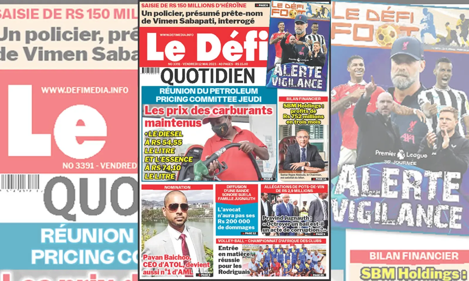 ? Voici la Une du Défi Quotidien. Le journal est en vente à Rs 15 l'exemplaire aux endroits habituels (supermarchés, boutiques, tabagies, superettes). Bonne lecture !