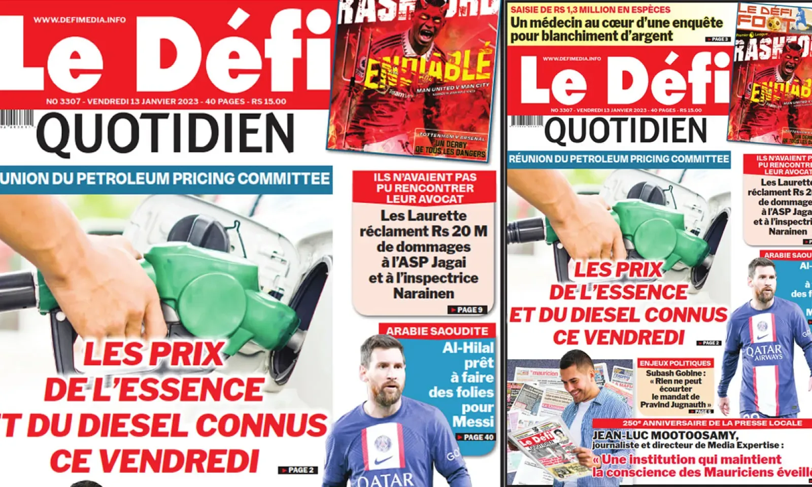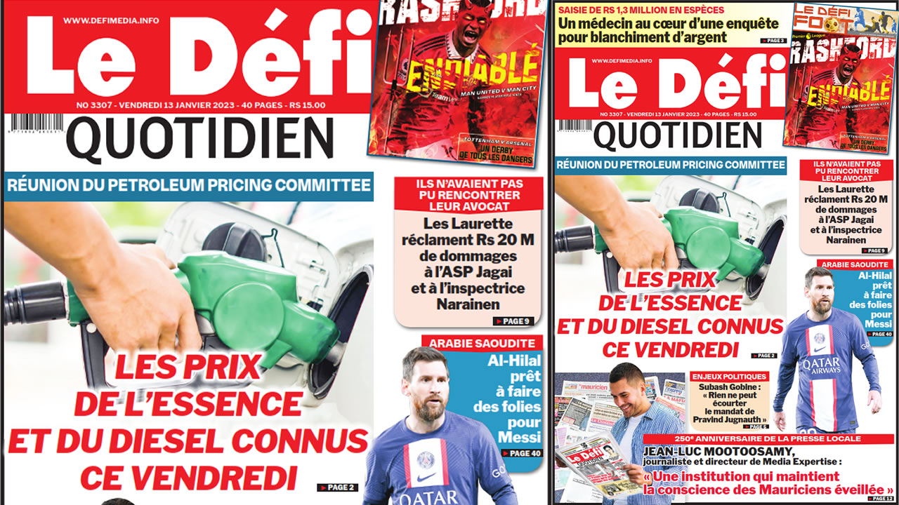 ? Voici la Une du Défi Quotidien. Le journal est en vente à Rs 15 l'exemplaire aux endroits habituels (supermarchés, boutiques, tabagies, superettes). Bonne lecture !