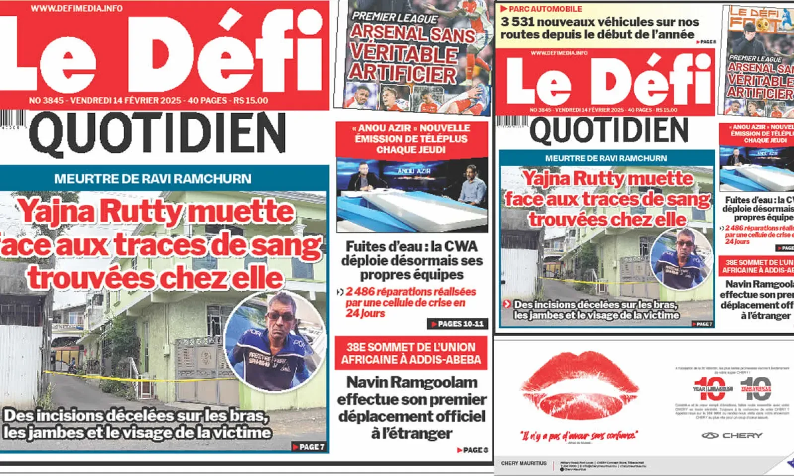 ? Voici la Une du Défi Quotidien. Le journal est en vente à Rs 15 l'exemplaire aux endroits habituels (supermarchés, boutiques, tabagies, superettes). Bonne lecture !