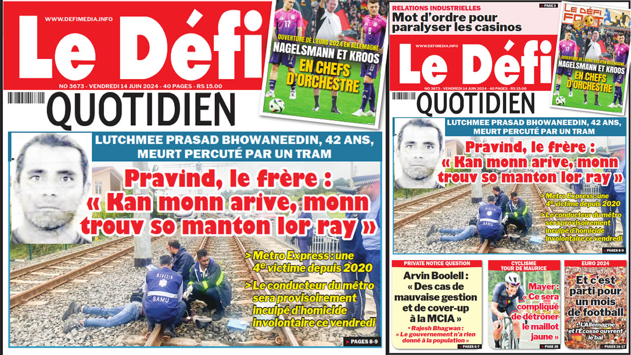 ? Voici la Une du Défi Quotidien. Le journal est en vente à Rs 15 l'exemplaire aux endroits habituels (supermarchés, boutiques, tabagies, superettes). Bonne lecture !