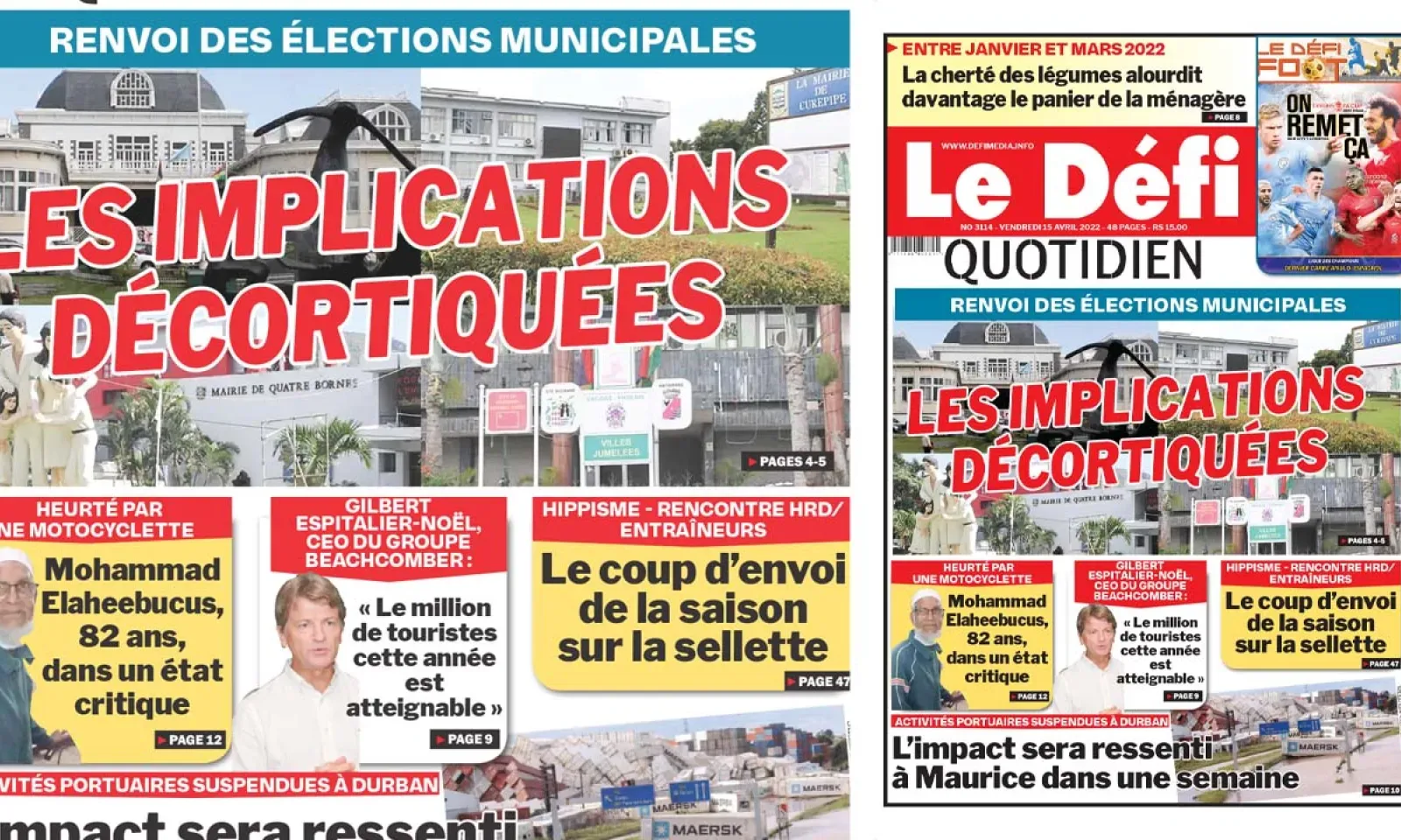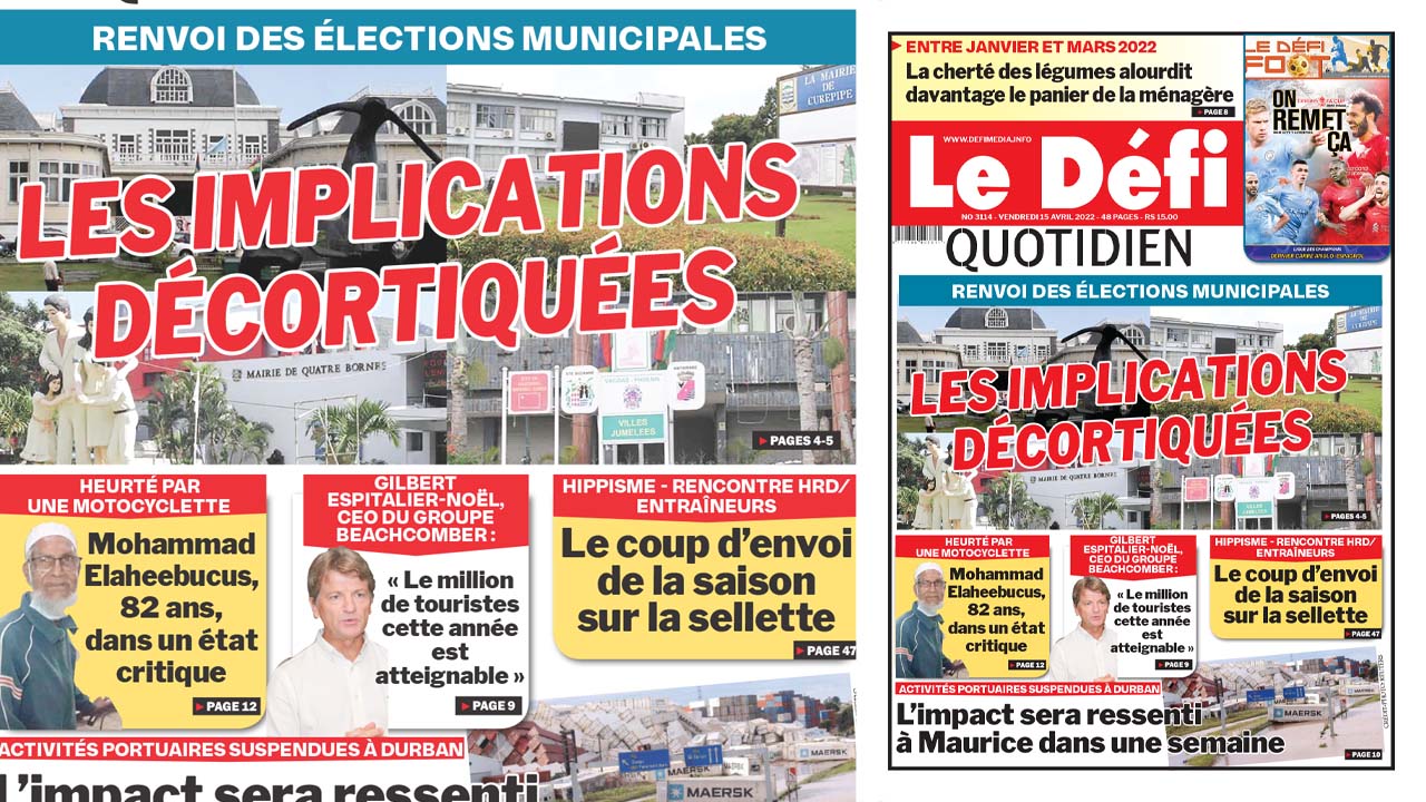 ? Voici la Une du Défi Quotidien. Le journal est en vente à Rs 15 l'exemplaire aux endroits habituels (supermarchés, boutiques, tabagies, superettes). Bonne lecture !