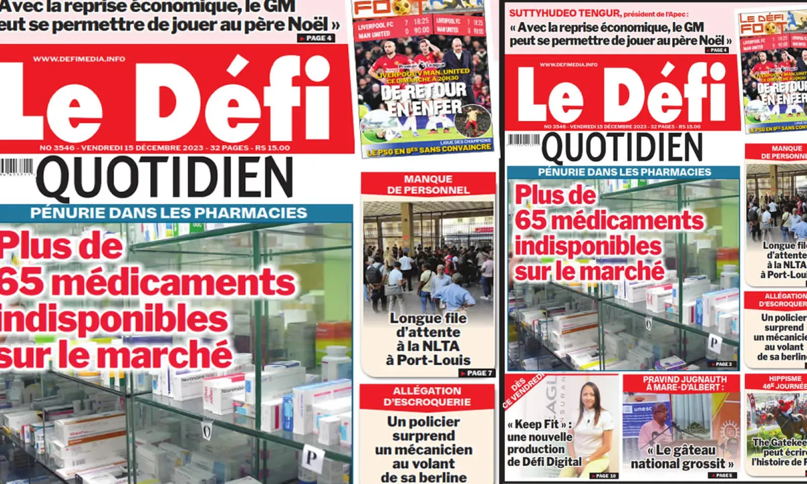 ? Voici la Une du Défi Quotidien. Le journal est en vente à Rs 15 l'exemplaire aux endroits habituels (supermarchés, boutiques, tabagies, superettes). Bonne lecture !