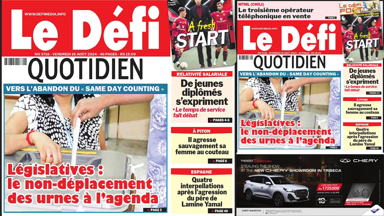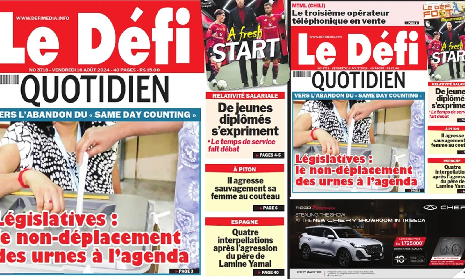 ? Voici la Une du Défi Quotidien. Le journal est en vente à Rs 15 l'exemplaire aux endroits habituels (supermarchés, boutiques, tabagies, superettes). Bonne lecture !