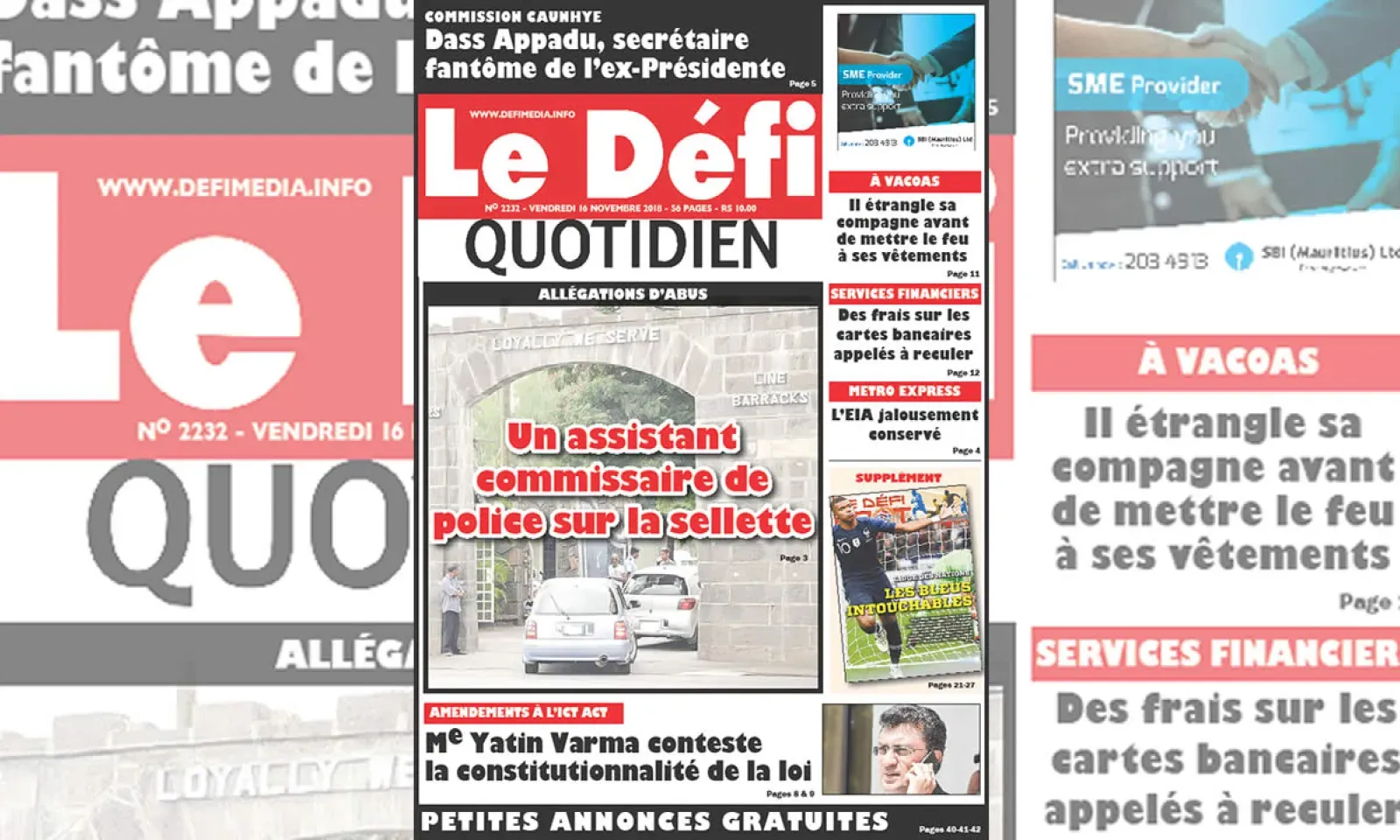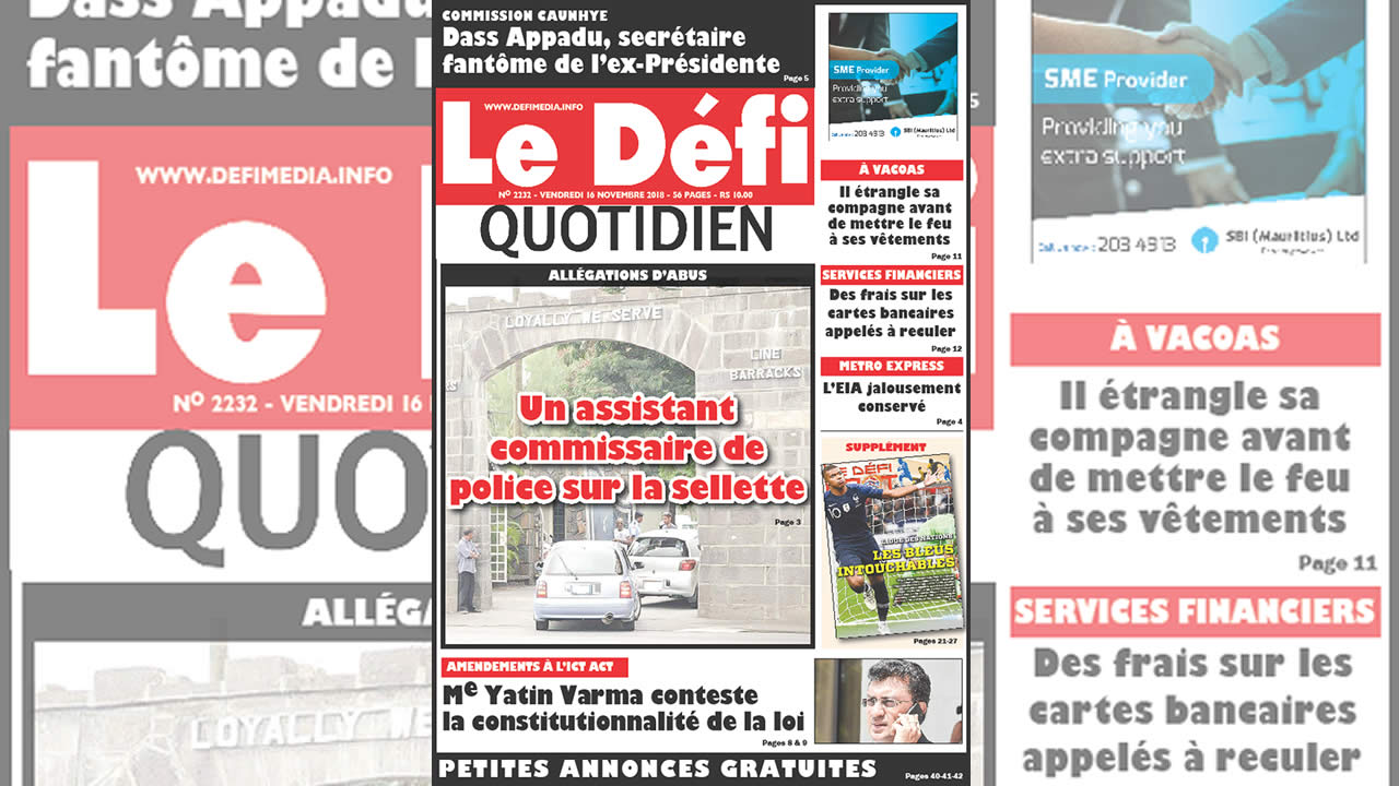 Après la déclaration d’un policier au CCID le jeudi 15 novembre, un assistant commissaire de police pourrait se retrouver en eaux troubles. Ce dernier serait impliqué dans un délit présumé de faux concernant des entrées faites dans un « Log Book » de la police pour enregistrer l’utilisation des véhicules officiels.