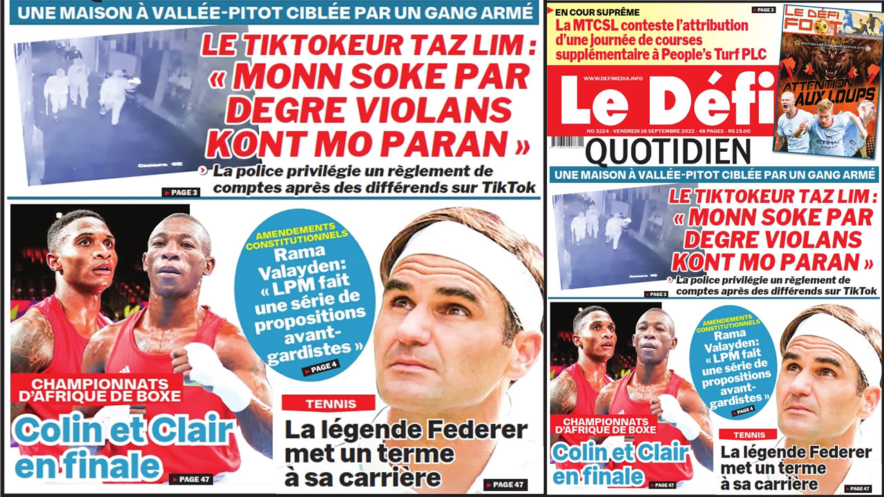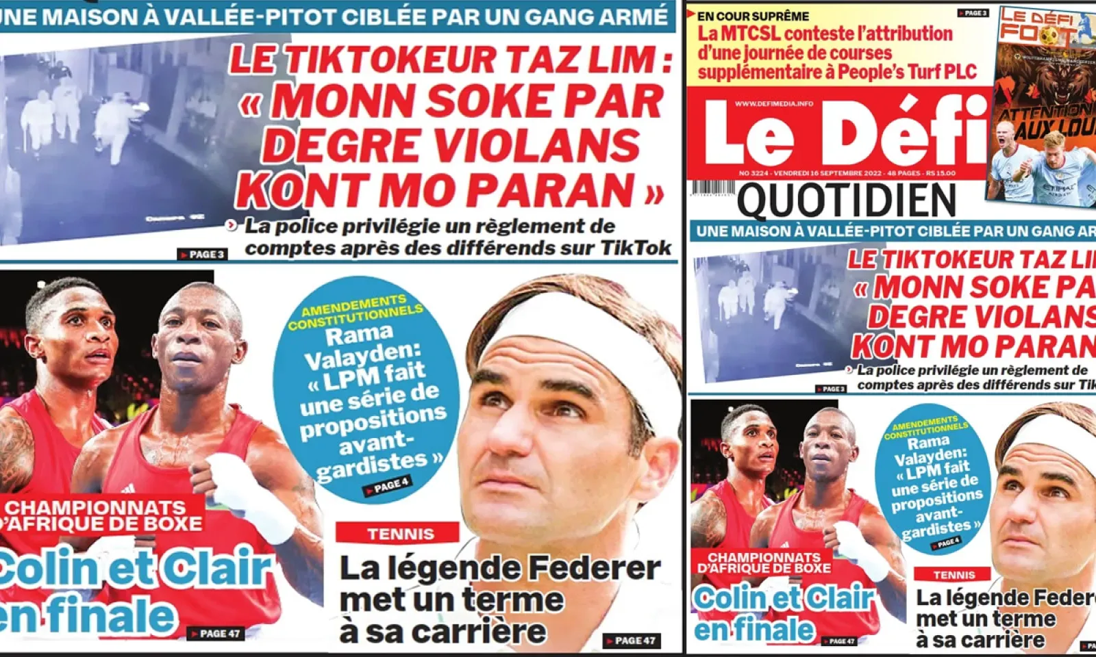 Voici la une du Défi Quotidien de ce vendredi 16 Septembre 2022