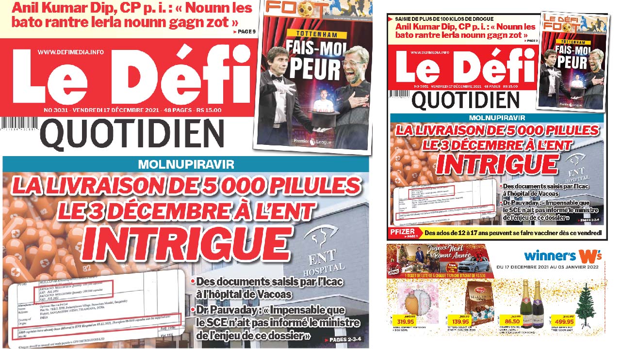 Voici la une du Défi Quotidien de ce vendredi 17 décembre 2021