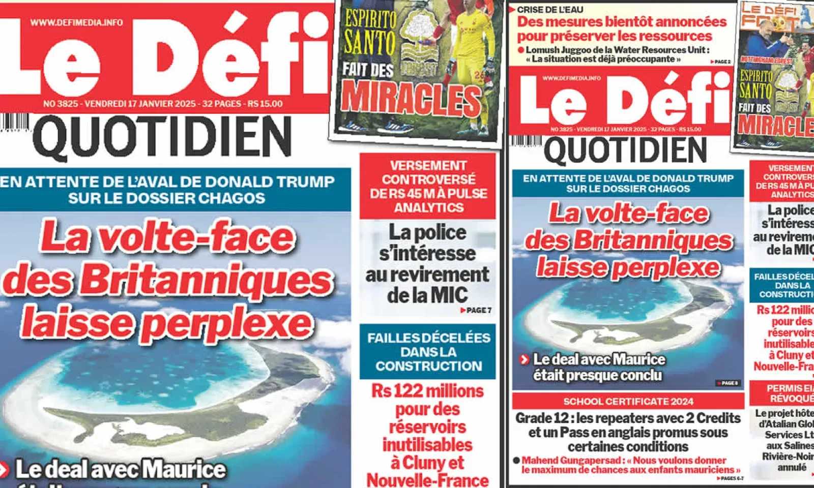 ? Voici la Une du Défi Quotidien. Le journal est en vente à Rs 15 l'exemplaire aux endroits habituels (supermarchés, boutiques, tabagies, superettes). Bonne lecture !