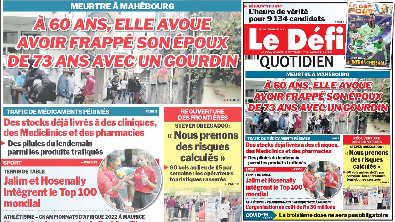 ? Voici la Une du Défi Quotidien. Le journal est en vente à Rs 15 l'exemplaire aux endroits habituels (supermarchés, boutiques, tabagies, superettes). Bonne lecture !