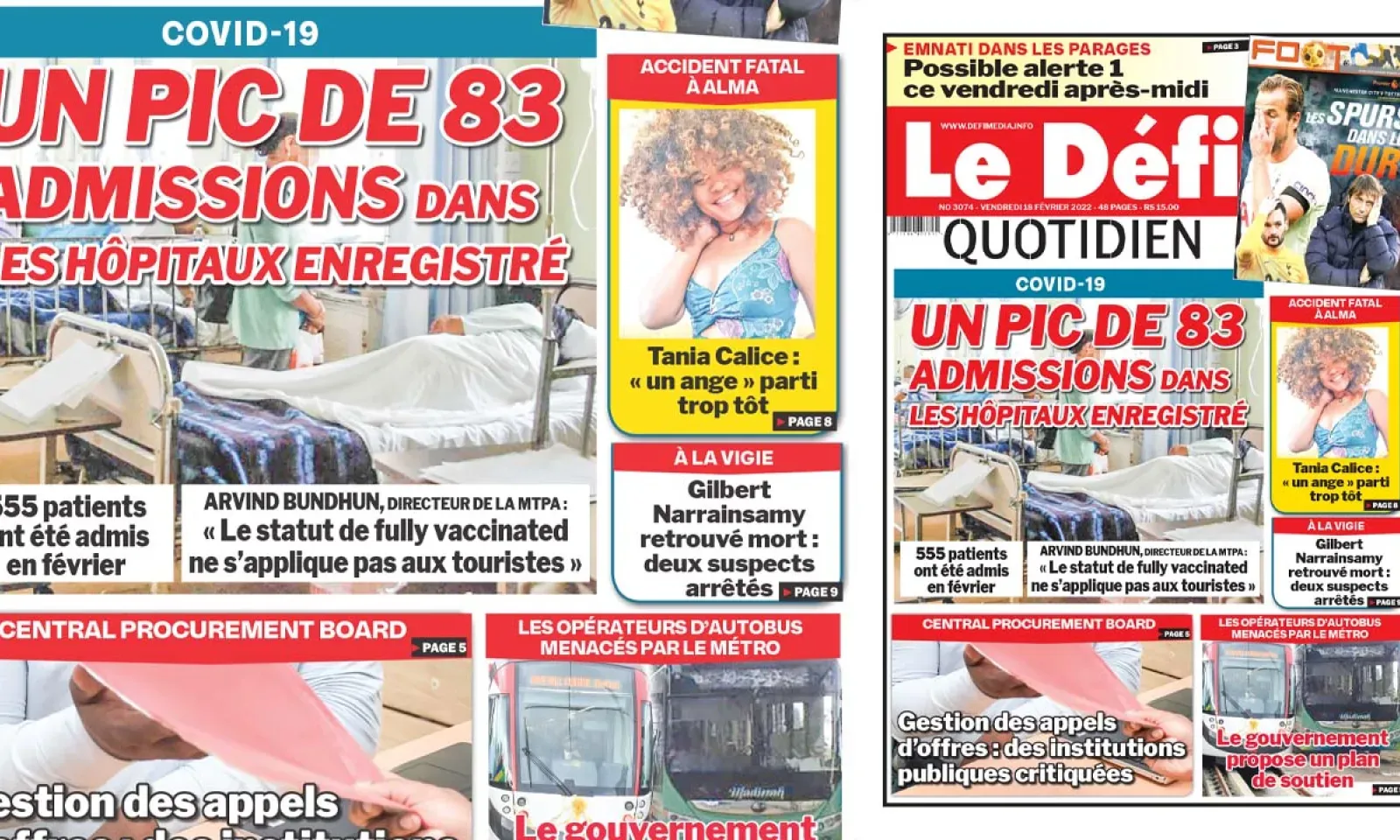 ? Voici la Une du Défi Quotidien. Le journal est en vente à Rs 15 l'exemplaire aux endroits habituels (supermarchés, boutiques, tabagies, superettes). Bonne lecture !