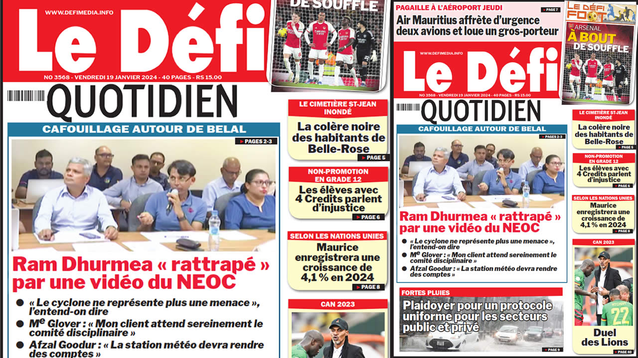 ? Voici la Une du Défi Quotidien. Le journal est en vente à Rs 15 l'exemplaire aux endroits habituels (supermarchés, boutiques, tabagies, superettes). Bonne lecture !