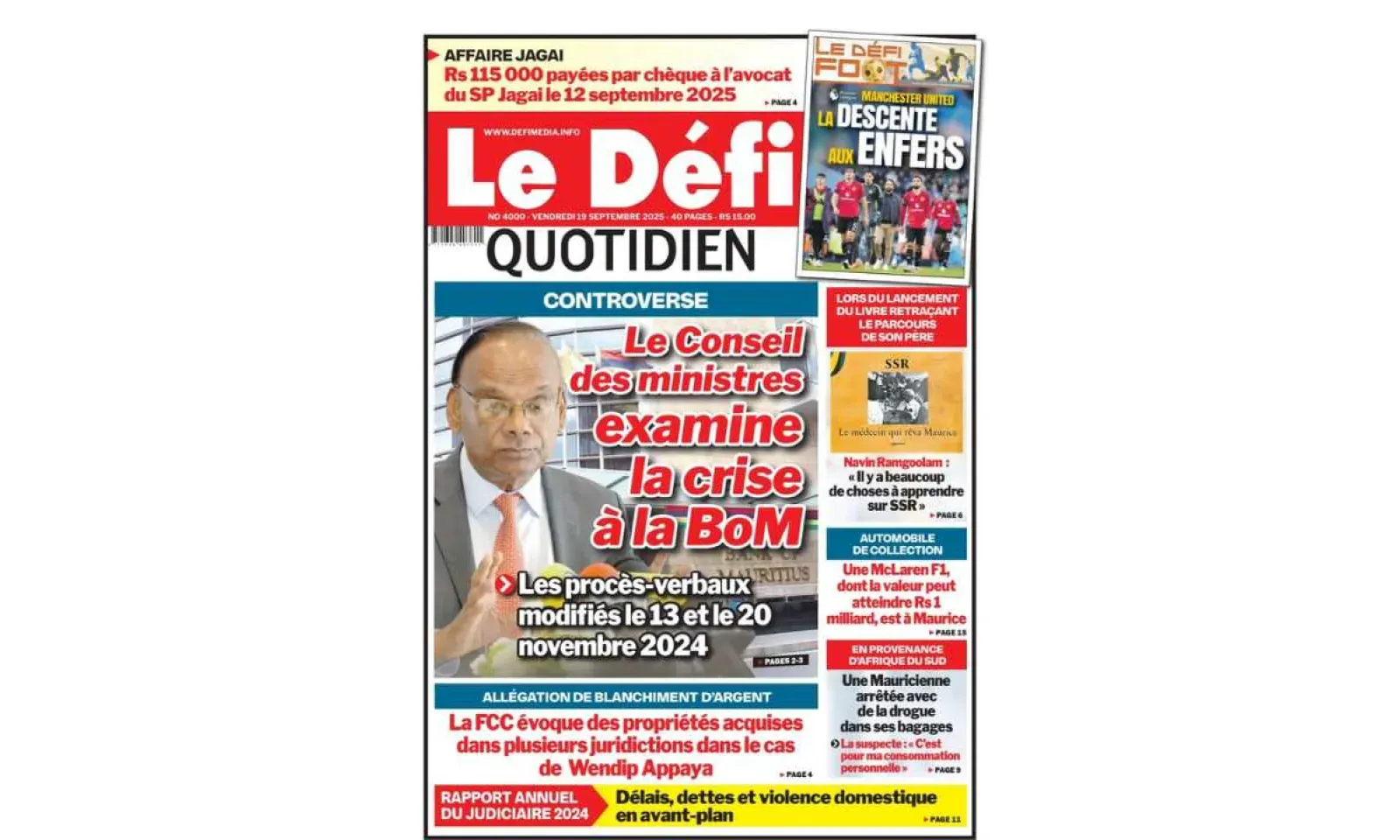 ? Voici la Une du Défi Quotidien. Le journal est en vente à Rs 15 l'exemplaire aux endroits habituels (supermarchés, boutiques, tabagies, superettes). Bonne lecture !