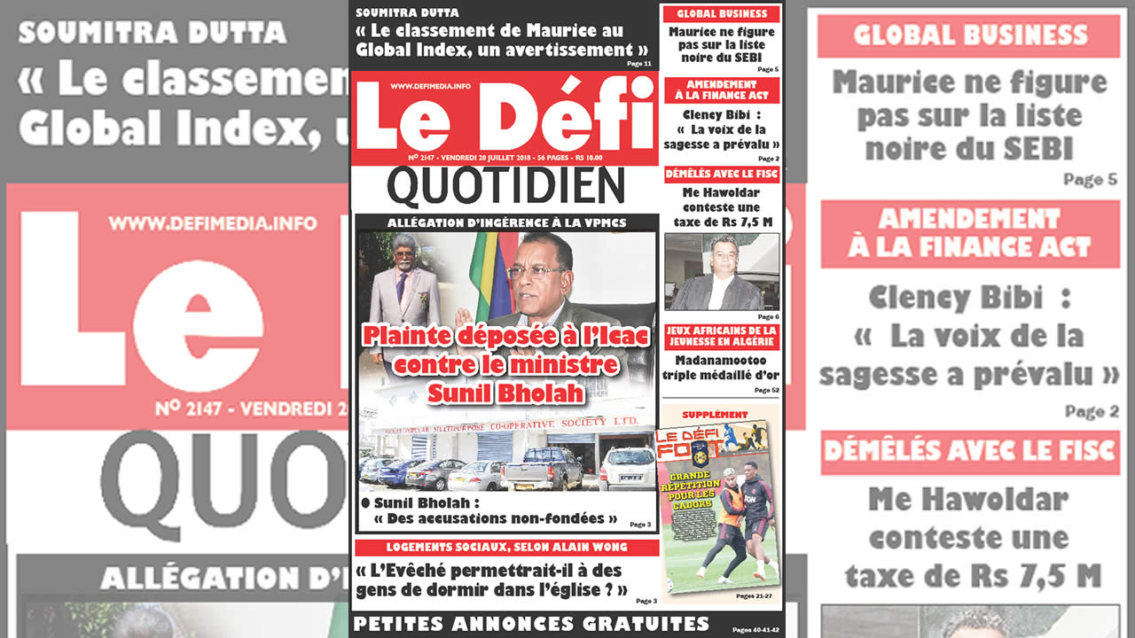 Voici la Une du Defi Quotidien de ce vendredi 20 juillet 2018