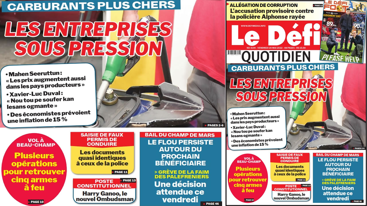 Voici la une du Défi Quotidien de ce vendredi 20 Mai 2022