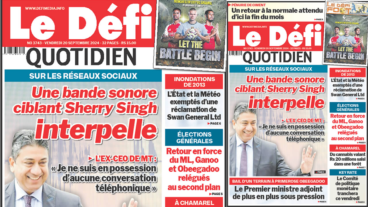 ? Voici la Une du Défi Quotidien. Le journal est en vente à Rs 15 l'exemplaire aux endroits habituels (supermarchés, boutiques, tabagies, superettes). Bonne lecture !