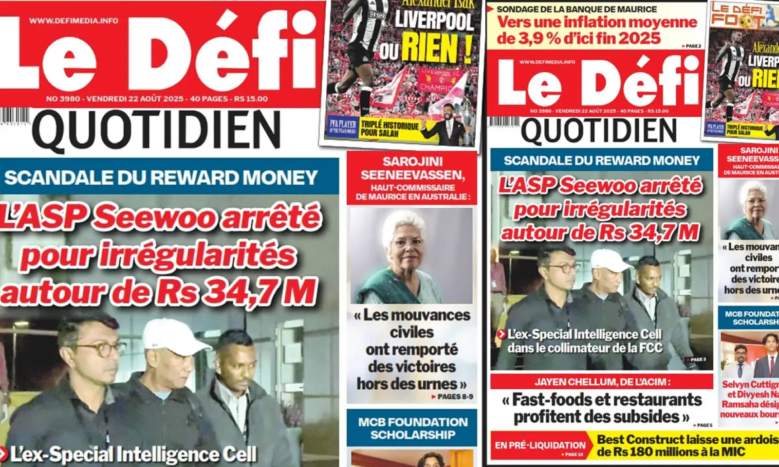 ? Voici la Une du Défi Quotidien. Le journal est en vente à Rs 15 l'exemplaire aux endroits habituels (supermarchés, boutiques, tabagies, superettes). Bonne lecture !
