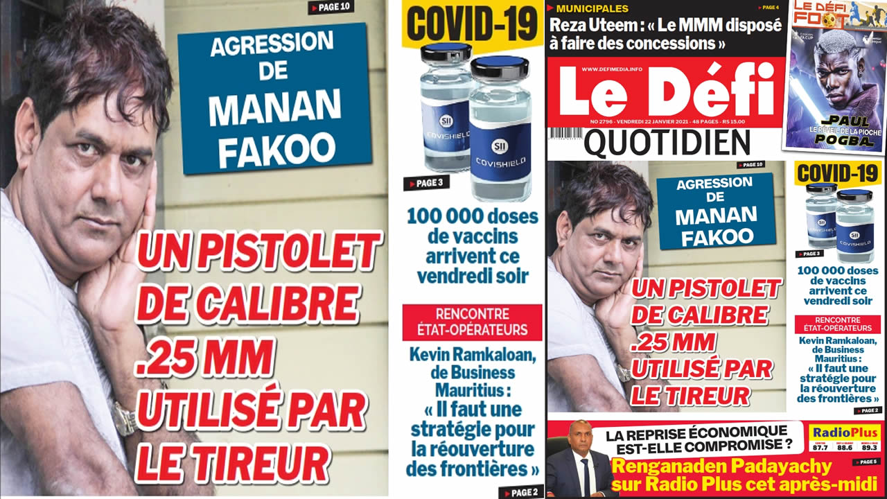 ? Voici la Une du Défi Quotidien. Le journal est en vente à Rs 15 l'exemplaire aux endroits habituels (supermarchés, boutiques, tabagies, superettes). Bonne lecture !