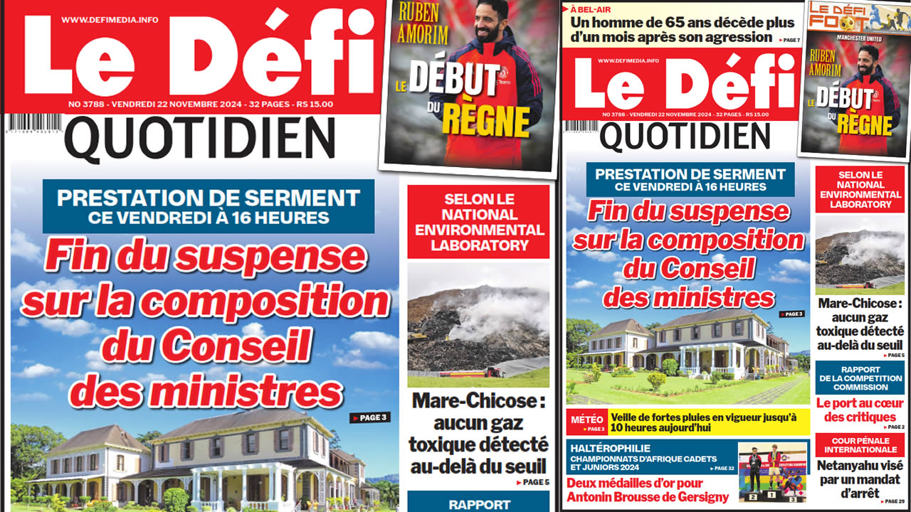Voici la une du Défi Quotidien de ce Vendredi 22 Novembre 2024