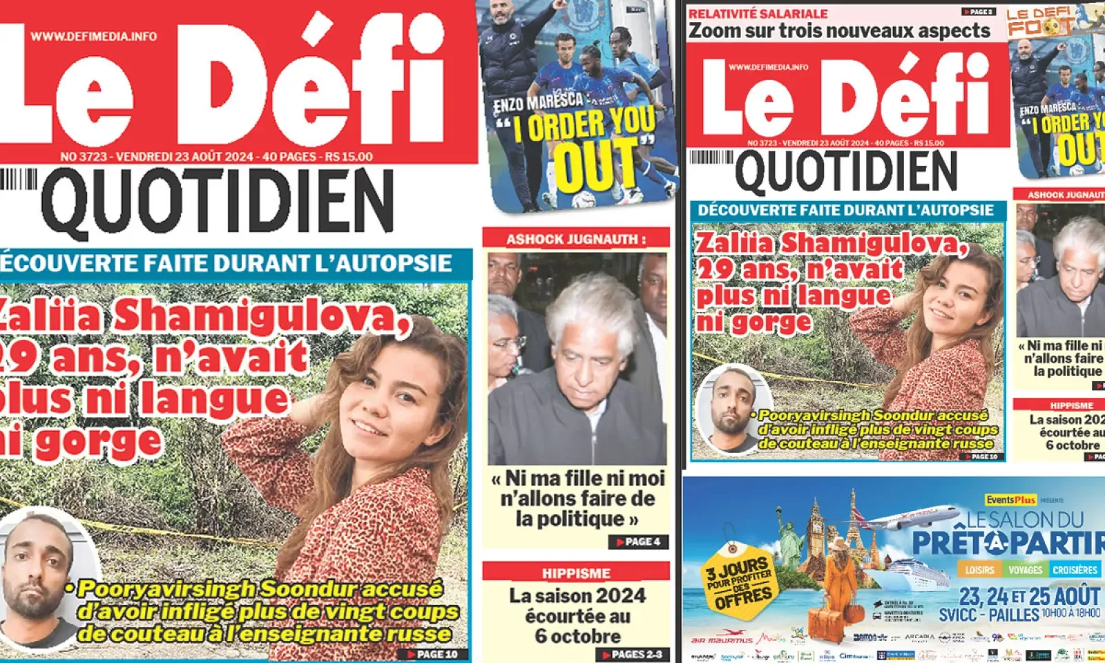 Voici la une du Défi Quotidien de ce Vendredi 23 Août 2024