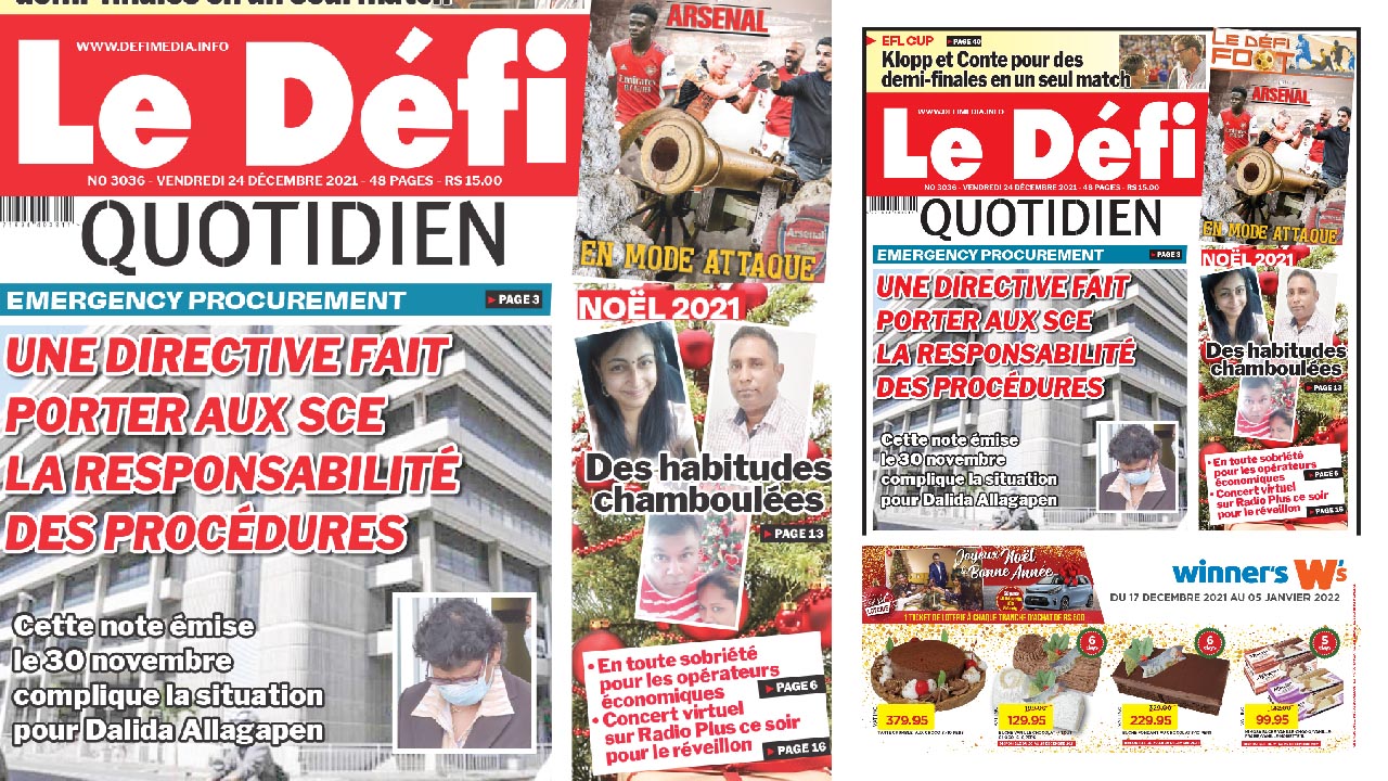 ? Voici la Une du Défi Quotidien. Le journal est en vente à Rs 15 l'exemplaire aux endroits habituels (supermarchés, boutiques, tabagies, superettes). Bonne lecture !