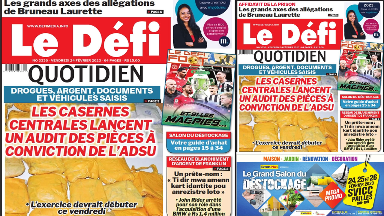 ? Voici la Une du Défi Quotidien. Le journal est en vente à Rs 15 l'exemplaire aux endroits habituels (supermarchés, boutiques, tabagies, superettes). Bonne lecture !