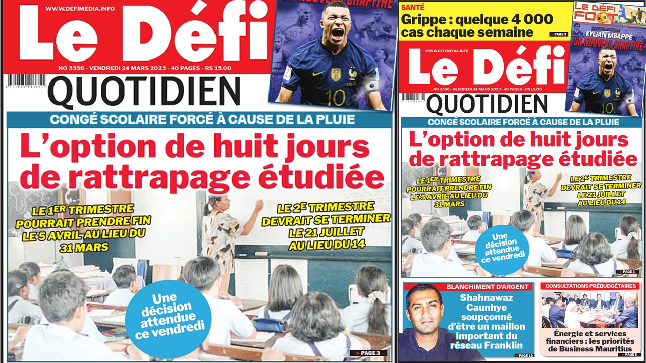 ? Voici la Une du Défi Quotidien. Le journal est en vente à Rs 15 l'exemplaire aux endroits habituels (supermarchés, boutiques, tabagies, superettes). Bonne lecture !