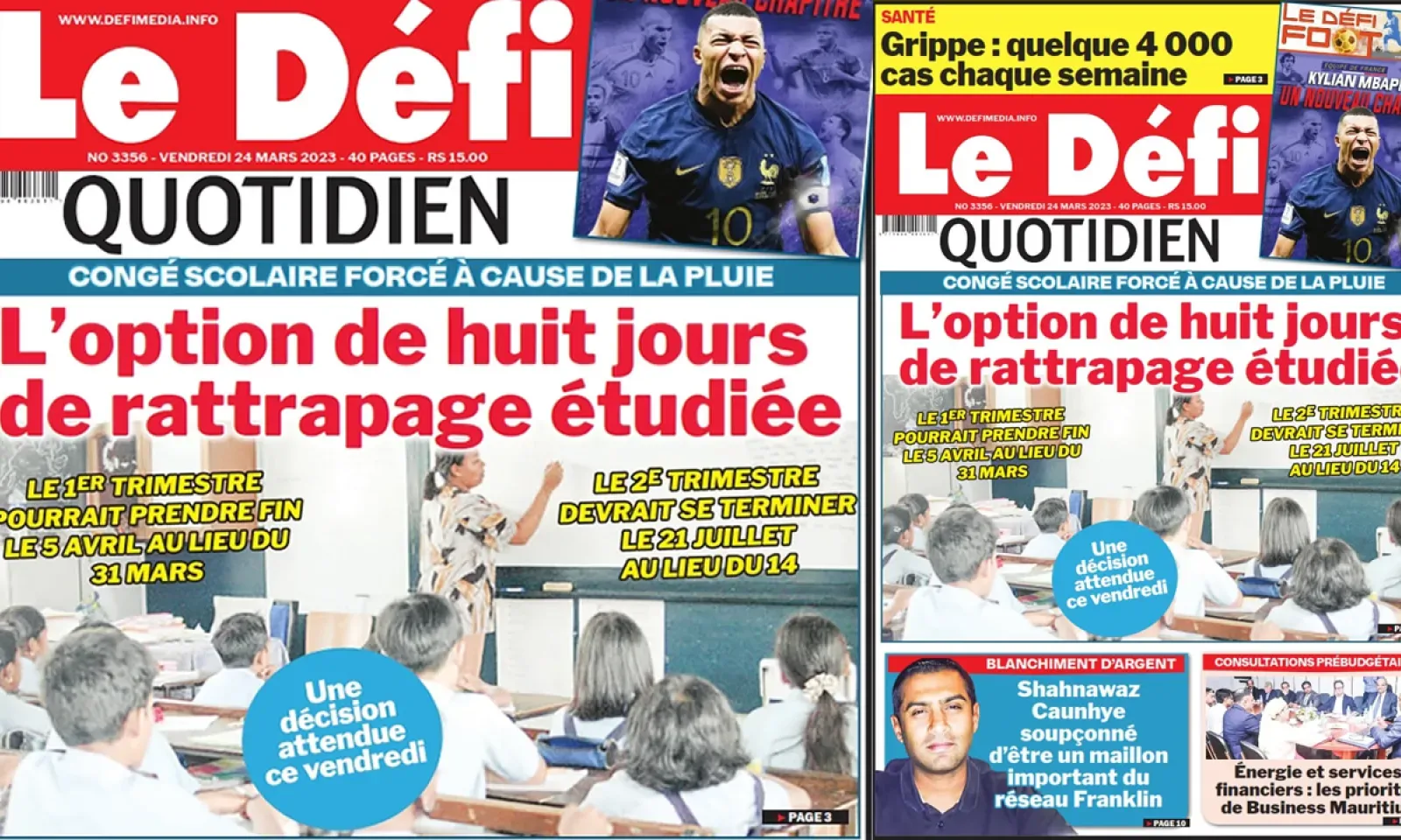 Voici la une du Défi Quotidien de ce Vendredi 24 Mars 2023