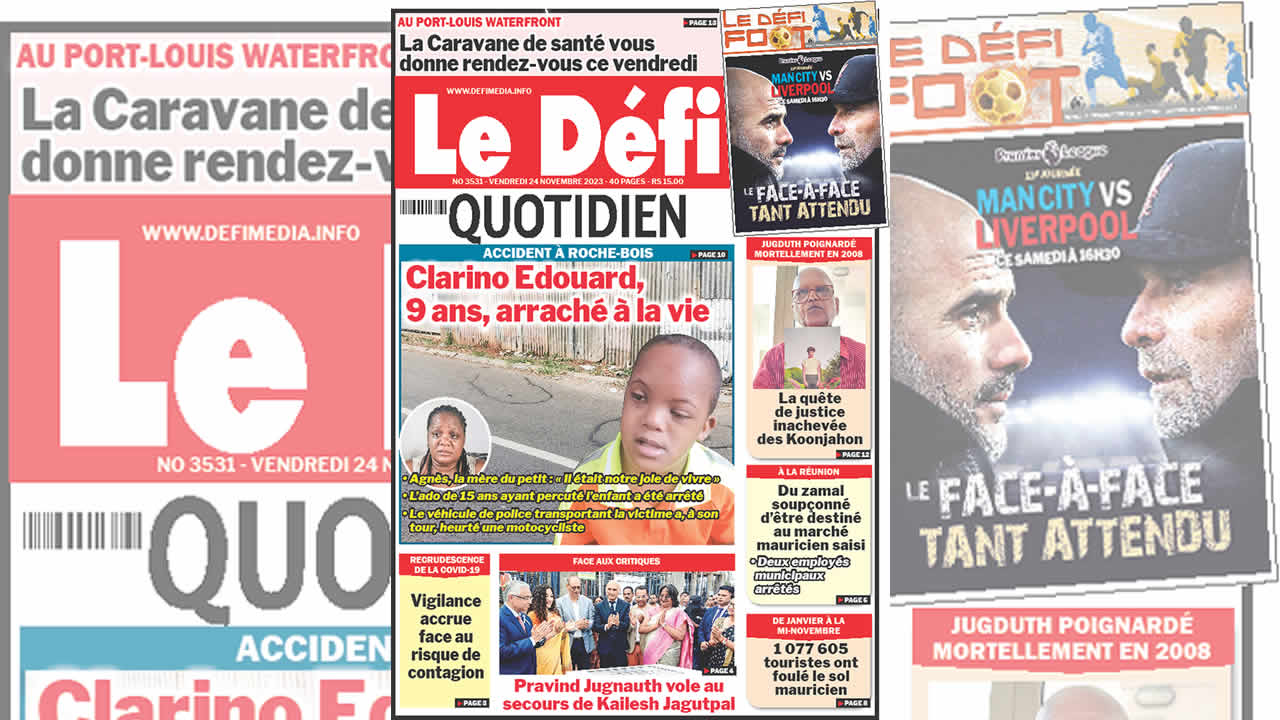 ? Voici la Une du Défi Quotidien. Le journal est en vente à Rs 15 l'exemplaire aux endroits habituels (supermarchés, boutiques, tabagies, superettes). Bonne lecture !